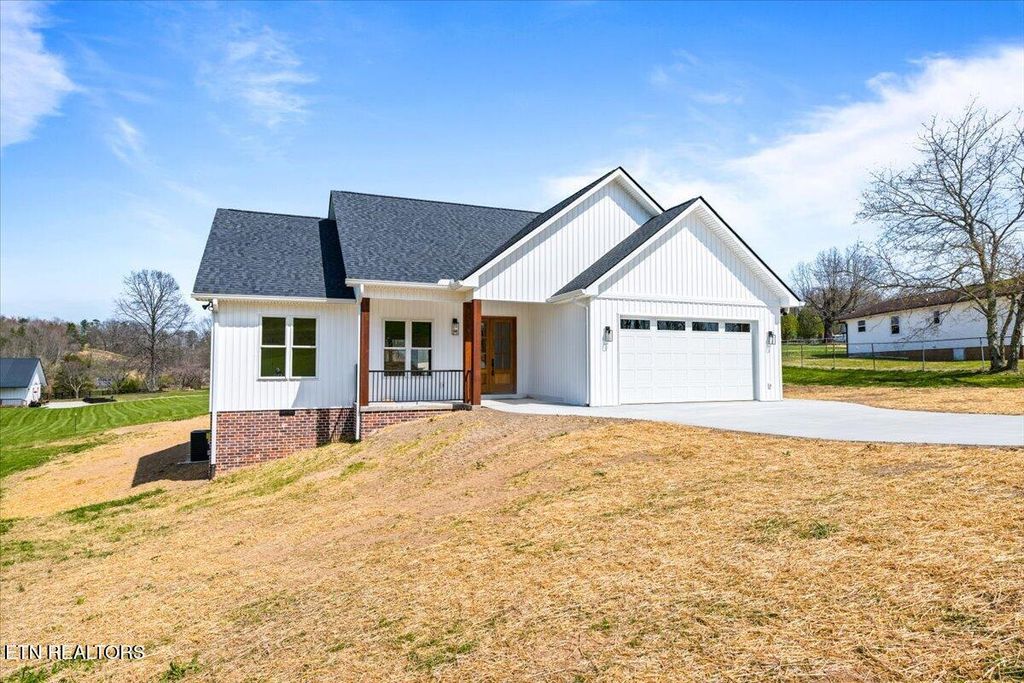 New Construction. Custom Built Top Quality Materials. Detailed Construction. 3 Bedroom, 2 Bath home with LR/DR/Kit combo open floor plan. 10 foot ceilings. Laminate and tile floors. Walk-In Tile Shower. Front and Rear Porch. Sliding Barn Doors. Walk In Closet. Stain Steel Appliances. Quartz Granite Counter Tops. Maintenance free exterior. Half Acre Lot. Concrete Drive. 3 miles from city limits. 1 mile from Norris Lake and public boat ramp. Upgrades throughout. Builders Warranty.