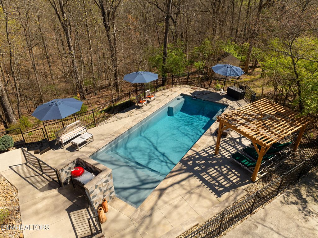 Step outside and enjoy a resort-style feel with a heated pool ready for year-round use, surrounded by a private and comfortable wooded setting. The home features an attached three-car garage with ample parking and storage space made for this larger home. The property is very unique in regards to the neighborhood's typical restrictions, offering many potential possibilities with the lot (reach out to the listing agent to discuss). The property's size and setting make it ideal for those seeking privacy in Knoxville while still being very close to the shopping, dining, and other amenities in Turkey Creek and West Knoxville