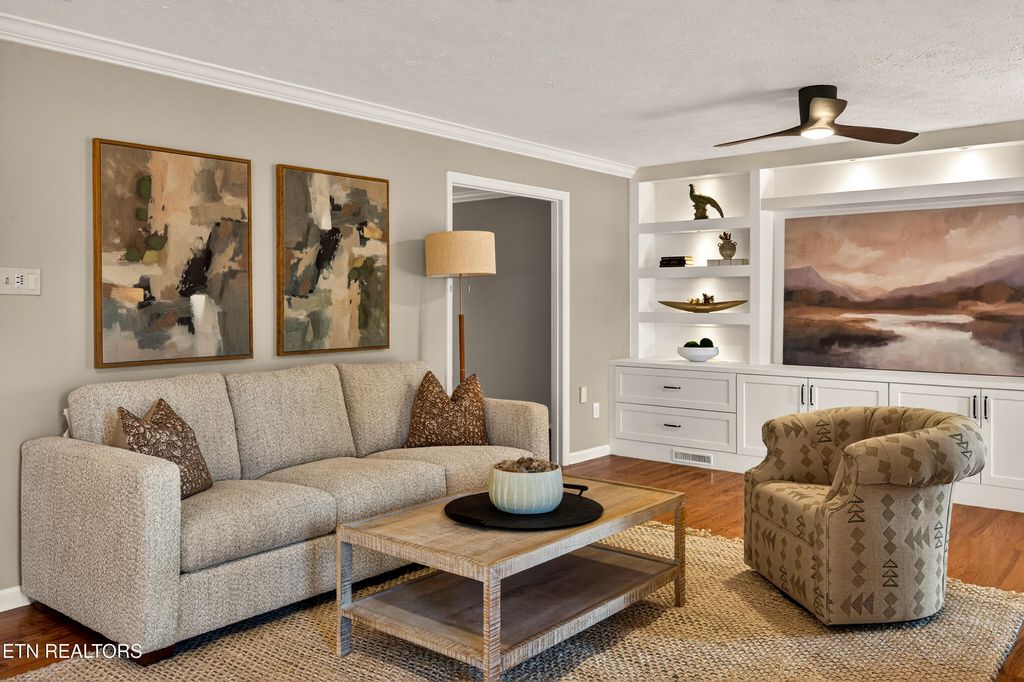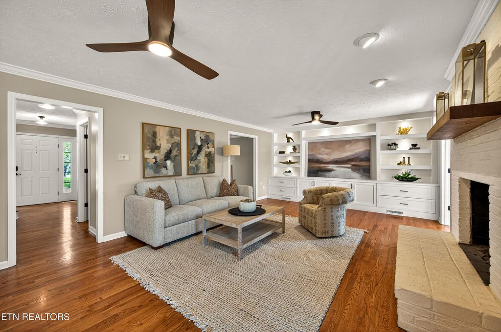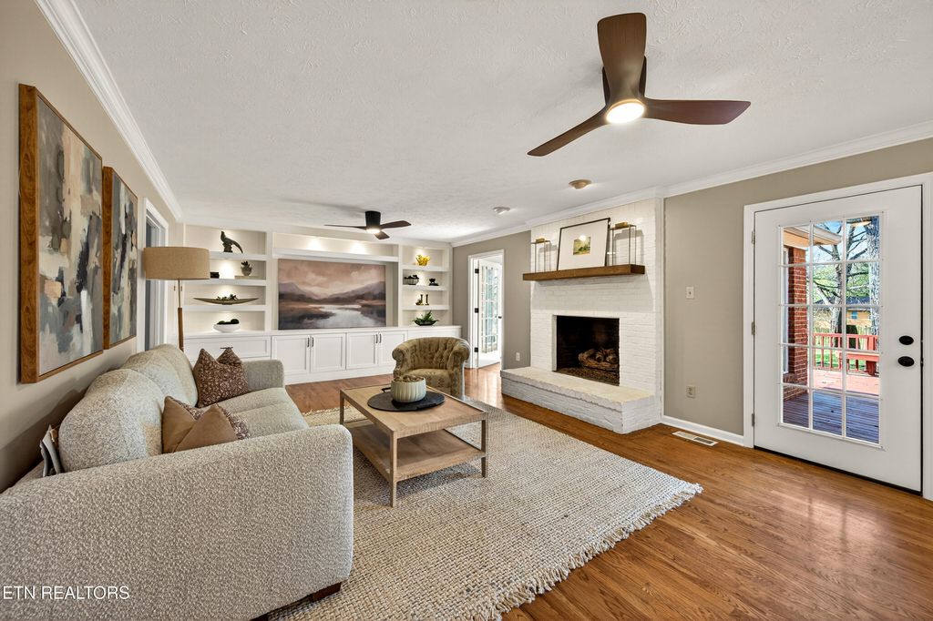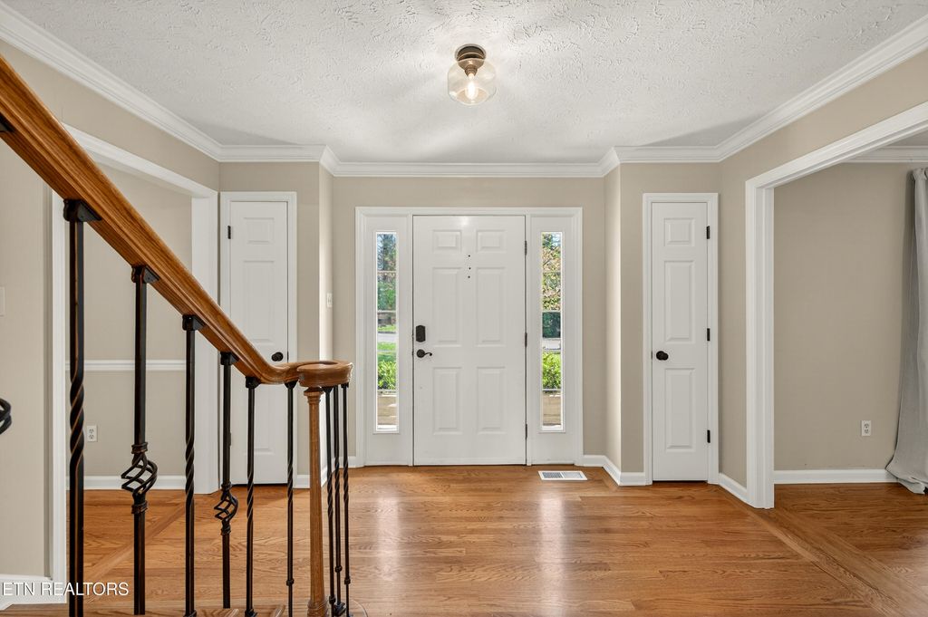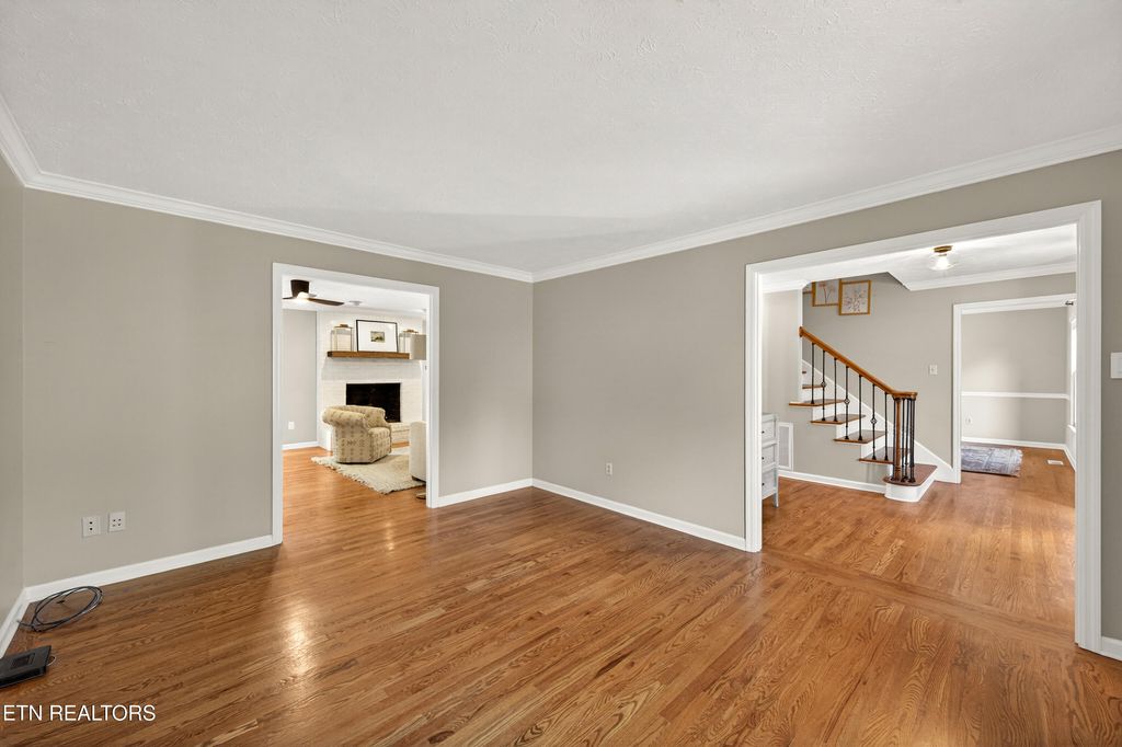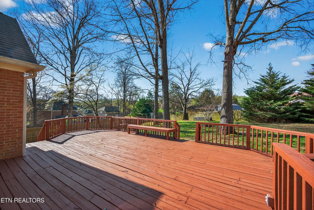 All brick home in Farragut Crossing with gorgeous brand new bathrooms and upgrades! Location is everything and this home has it! Minutes to West Knoxville's premier shops and dining, Concord Park on Fort Loudoun Lake, and zoned for all Farragut schools. This home boasts 3,358 square feet, including four bedrooms plus a large bonus room and two and a half bathrooms. Step inside the front door and you're greeted with stunning hardwood floors, elegant crown molding and brilliant natural light throughout. The main level's open layout flows seamlessly from the spacious living room into a bright and airy kitchen. You'll love cooking on the brand new GE Profile gas cooktop, oven and microwave! In the living room a stunning custom built-in adds both architectural interest and functional storage. Entertain friends and family, there's plenty of space with both a formal dining room and eat in kitchen area. Cozy mornings can be spent in front of the gas fireplace or the warm and inviting sunroom. Upstairs you'll find all four bedrooms, including a generous primary suite with a large walk-in closet fitted with a new custom closet system. Both bathrooms upstairs were completely renovated this year! The gorgeous bathrooms boast tiled showers, marble and quartz top vanities, tile floors and upscale finishes. The bonus room is huge - with multiple areas of flex space for an office, playroom, etc. Laundry is conveniently located upstairs and features tons of storage. Brand new carpet upstairs means you're ready to move right in! Outside you'll enjoy spending breezy afternoons on the expansive deck, you can make your indoor-outdoor living dream a reality! The large backyard feels extra private being fully fenced and lined with mature trees. Don't forget about the neighborhood amenities - the pool and tennis courts are just a quick walk from the house! Don't miss your chance to see this stunning home, schedule a showing today!