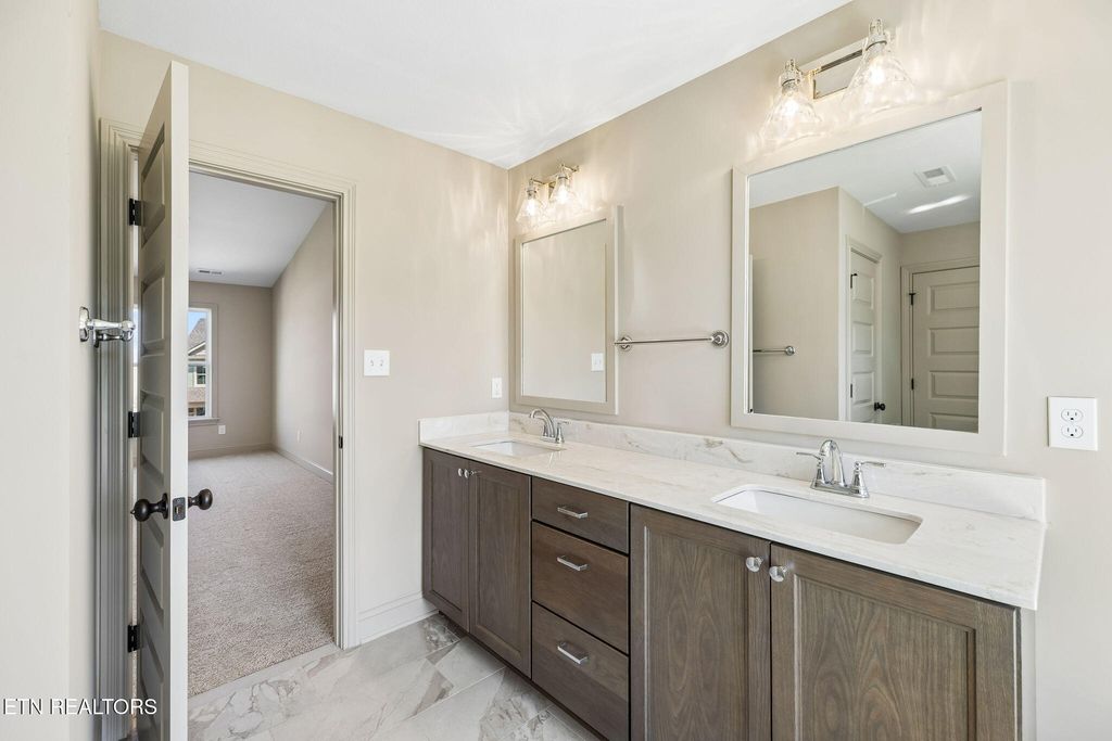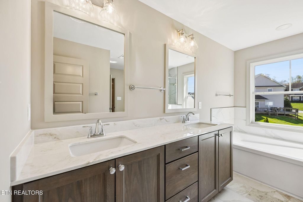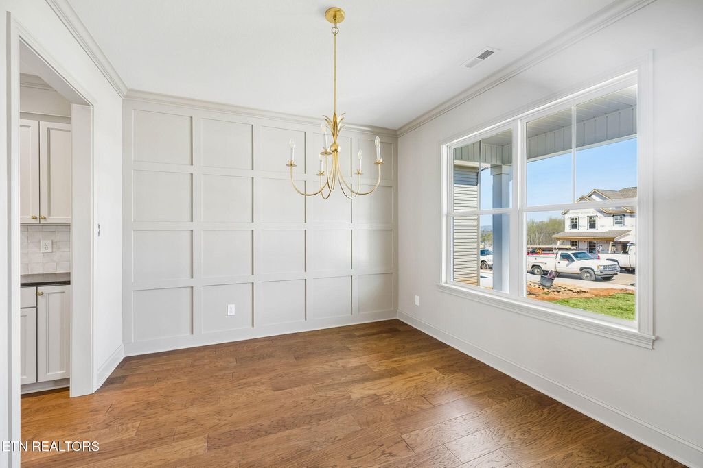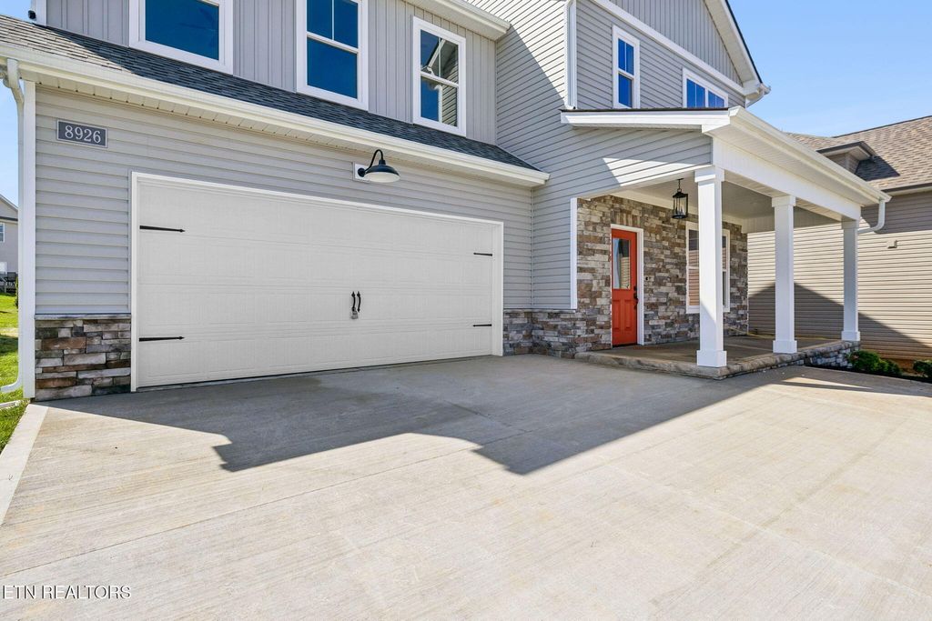Located just 15 minutes from downtown Knoxville and the Sevierville exit, this new construction home beautifully blends traditional charm with modern design. Upon entry, you're welcomed by a formal foyer and dining room featuring a stylish trimmed accent wall. The chef's kitchen offers abundant granite countertop space and ample cabinetry, with a large island perfect for dining or entertaining. Open to the kitchen, the living room features a marble-wrapped gas fireplace and direct access to the covered back porch. Just beyond the mudroom, you'll find a versatile 4th bedroom or office, a full bath, and access to the 2-car garage. Upstairs, the spacious primary suite includes a double vanity, soaking tub, tile and glass shower, and a walk-in closet. 2 additional bedrooms share a full bath, while a large loft or bonus room provides added flexibility and separation. The centrally located laundry room and additional storage complete the upper level.