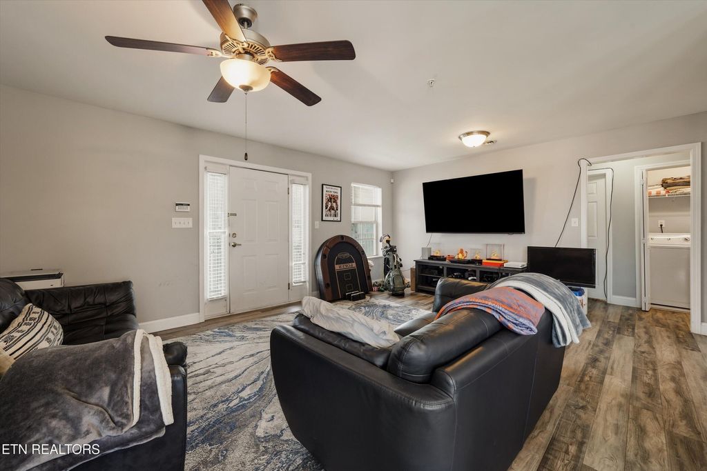 Looking for a condo near the University of Tennessee that's already fully furnished and ready to go? This 3-bedroom, 2-bath end-unit condo offers a turnkey setup just minutes from UT campus and downtown Knoxville. Located on the second floor, the end-unit position provides added privacy and natural light, along with an open-concept layout connecting the living, dining, and kitchen areas. A covered balcony extends the living space outdoors.