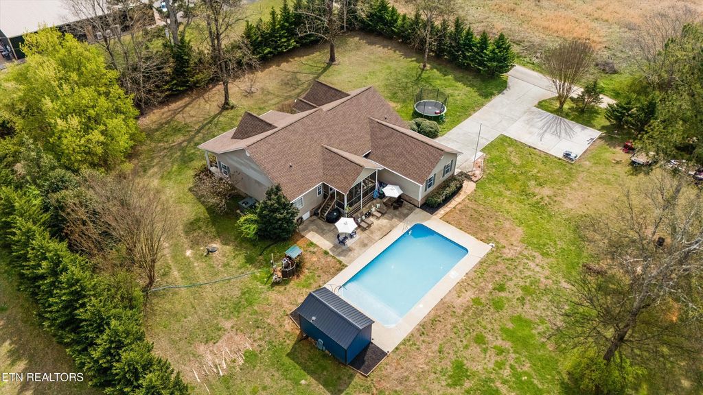This lovely one level home offers 3 bedrooms plus a 4th that could easily be used as a nursery or office space. A big open living room and spacious kitchen with a large walk in panty and plenty of space for a large dining table. You will love the 1 acre level yard, perfect for kiddos and fur babies to play. Outdoors you can enjoy the large front porch or back screened porch while watching the family splash in the pool with the cutest little pool house equipped with a bathroom for the perfect summer day pool party experience. The property is conveniently located to both Maryville and Madisonville allowing you to access all of the shopping, restaurants and medical facilities needed. Call to schedule your showing today!