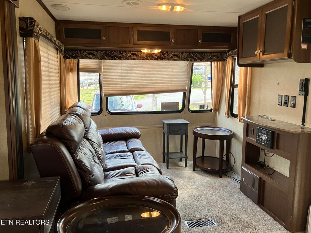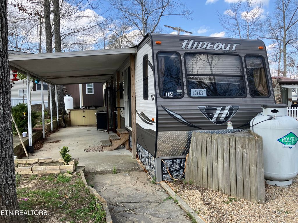 Nestled in the picturesque Tennessee countryside, we have a charming 1 bedroom, 1 bathroom home available for your perfect vacation getaway or your new simplified lifestyle. This cozy and well-maintained RV offers a comfortable retreat in the heart of nature. Step inside to discover a thoughtfully designed space that combines modern convenience with rustic charm. The living area features plush seating, providing a relaxing spot to unwind after a day of exploring the nearby attractions. Adjacent to the living area is a dining nook, perfect for enjoying meals or planning your adventures. The kitchen is fully equipped with essential appliances, allowing you to prepare your meals with ease. Outside, enjoy morning coffee on your covered patio. Property thoughtfully includes full hookups plus an additional storage shed. Experience the epitome of leisurely living at Holiday Out!