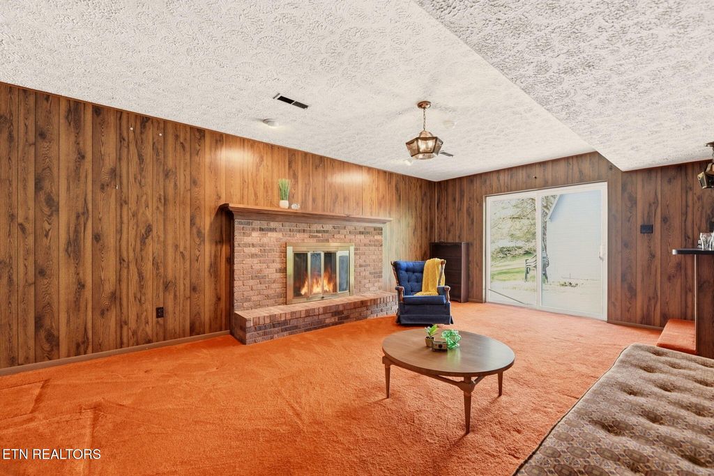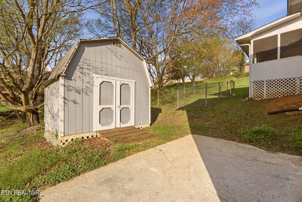Lakeview Acres in Clinton, TN offers the perfect blend of location, quality construction, and space. Conveniently located just 15 minutes to Oak Ridge, 6 minutes to Aspire Recreation Park, and less than 2 miles from Historic Downtown Clinton's antiques, shops, and Main Street charm, this beautiful lake community is a wonderful place to call home. This all-brick basement rancher with a two-car garage showcases a subtle mid-century modern flair and endless potential. Inside, the open foyer welcomes you into a huge living room with wide doorways leading to the spacious kitchen, a room full of opportunity to create the showpiece of the home while taking advantage of the abundant space, natural light, and easy access to the screened porch--perfect for morning coffee or relaxing on cool evenings. The main level features three roomy bedrooms, a hall bath, and a wonderful primary suite with a walk-in closet. You'll appreciate the generous closet space and storage throughout. Downstairs, the vintage-inspired family room is full of character with a wet bar, wood-burning fireplace, and new sliding doors leading to the patio. Outside, the backyard includes a storage shed and a fenced dog lot for added convenience.
