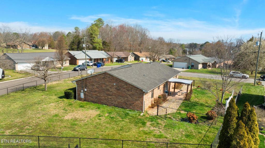 This wonderful all brick rancher sits on a level corner lot in a quiet neighborhood. The fully fenced yard is perfect for pets or families with children. The covered patio is especially nice on warm rainy evenings. This home is both a great starter and a great option for someone looking to downsize. Located 20 minutes from downtown Knoxville, this home is a perfect blend of urban and rural living.