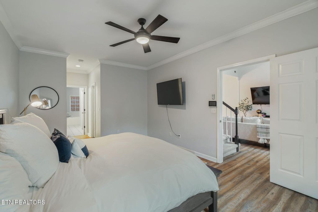 The main-level primary suite includes crown molding, huge walk in closet, additional second closet, double vanities, a walk-in shower, and a soaking tub. Upstairs, you'll find a spacious loft/bonus area providing versatility for a second living space, office, or media room plus two additional bedrooms, each with their own private bath.