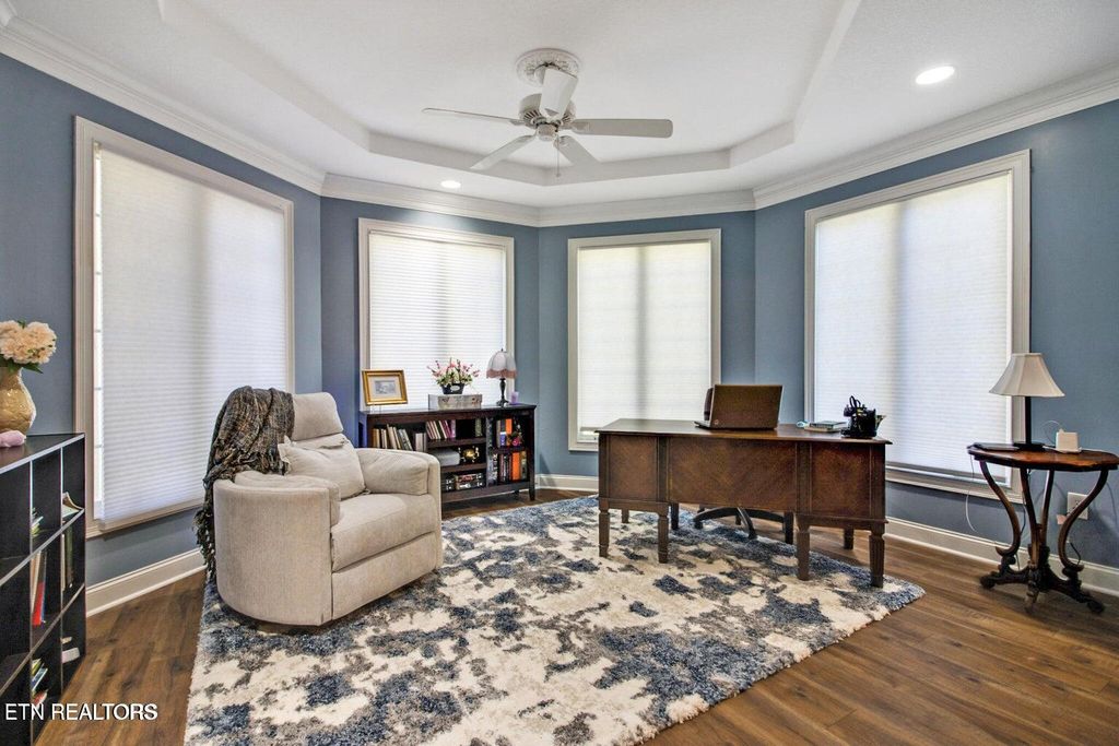 The main level includes a 19x32 primary bedroom suite with his and her closets, a jetted tub, and a step-in shower. Upstairs, there is another primary bedroom with a private full bath, as well as two more bedrooms that share a Jack & Jill bath. Additionally, there's an office area, a bonus room, and extra apx 9x16 floored storage space. The full-walkout basement offers a large recreational room with a fireplace, a wet bar with a wine cooler, a hidden playroom, and a man cave. Two unfinished rooms could be used as a workshop or for storage. This home is approximately 20 minutes from Oak Ridge and 40 minutes from West Knoxville. There's also a fenced area for pets. To fully appreciate all this house has to offer. You do not want to miss out on this wonderful home, so schedule your personal home tour. 1 of the 5 bedrooms and 1 of the full baths is in the detached garage with additional living quarters that could be finished for a guest house, offering apx 784 Sq Ft on the main level and 784 sq ft upstairs. The 4-car garage is great for the car enthusiast! This home is in an established neighborhood close to local schools and shopping. This location offers getting closer to nature, with the Emory River close by offering kayaking, fishing, swimming, and hiking. The WMA offers trail riding, hunting, and just enjoying the great outdoors! This location is about 20 minutes from the Windrock. This home has apx. overall sq ft of 10,600 being apx 6900 Living space with additional sq ft being 4 Car Garage space, unfinished basement space,as well as unfinished extra storage area above detached garage! This would make the total under roof excess sq ft apx. There are an excess of 10,600 Recreational areas as well! The photographer has made a set of floor plans that are available upon request. BUYERS to verify all information deemed reliable but NOT Guaranteed while making an offer before closing!