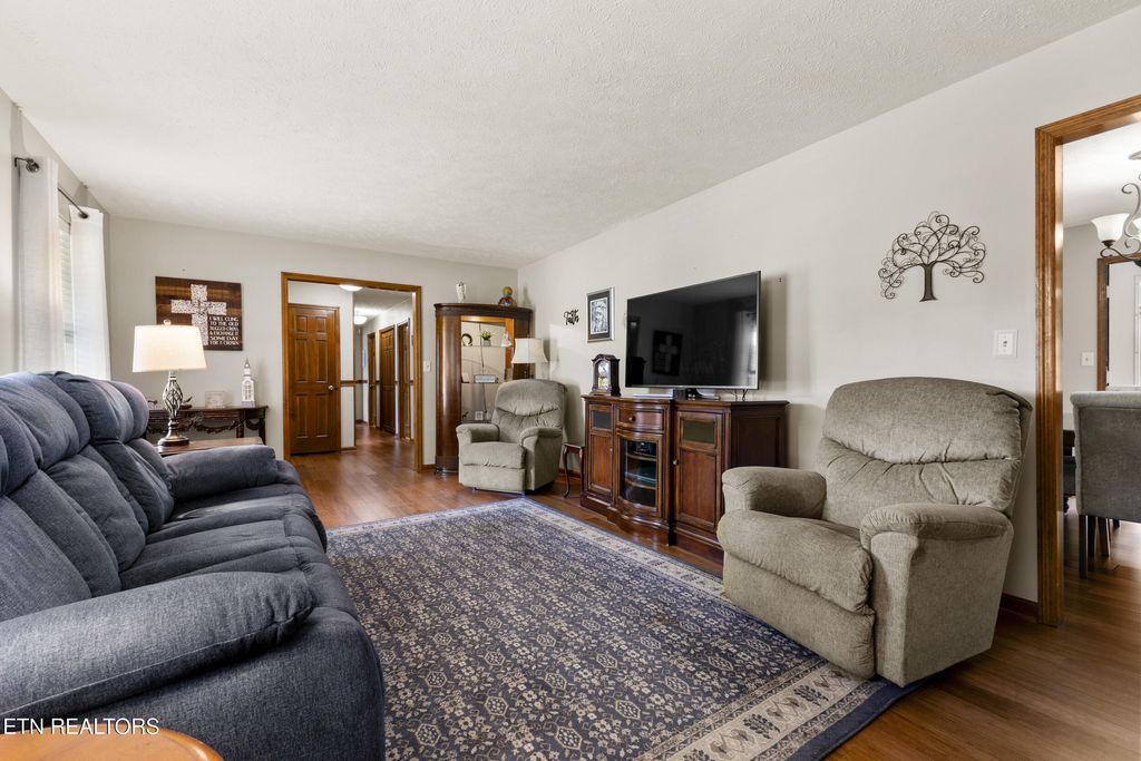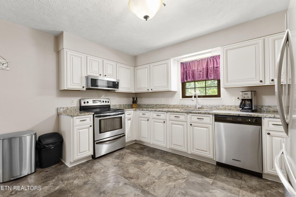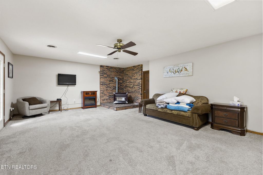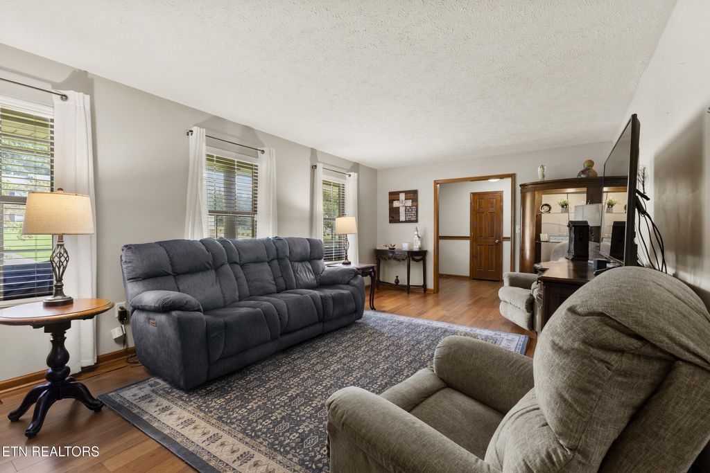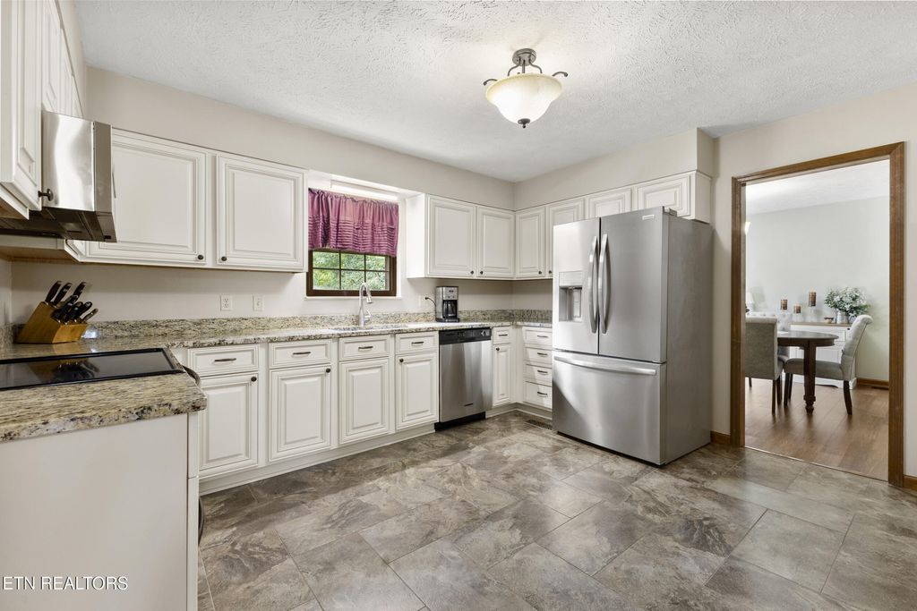 Meticulously maintained 3-bedroom, 3-bath home located in the desirable Alpha area of Morristown. Situated on over a half-acre lot, this home offers comfort, style, and convenience. The inviting living room centers around a charming wood-burning fireplace, creating a warm and welcoming atmosphere. The kitchen is well-appointed with stainless steel appliances, granite countertops, updated cabinetry featuring soft-close cupboards and drawers, and a pullout spice cupboard for added functionality. The finished basement provides a spacious additional living area with a second fireplace, a bonus room to be used as needed, and a large laundry room. The home also includes leaf gutter protection for low-maintenance living. Conveniently located near Hwy 160, offering easy access to Interstate 81 and the east end of Morristown. Enjoy nearby outdoor recreation at Panther Creek State Park and Cherokee Lake. Call today to schedule your private showing! Some photos have been virtually enhanced to show the front of the home without the ramp.