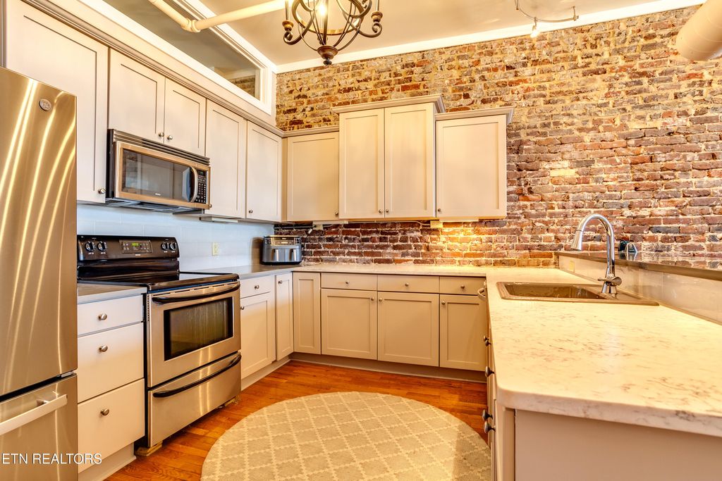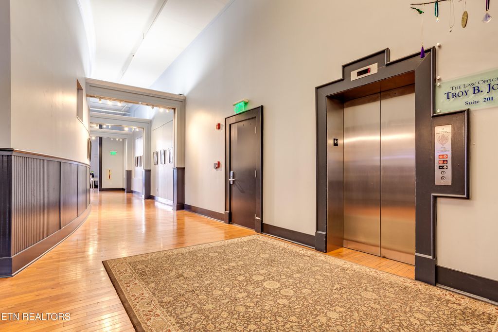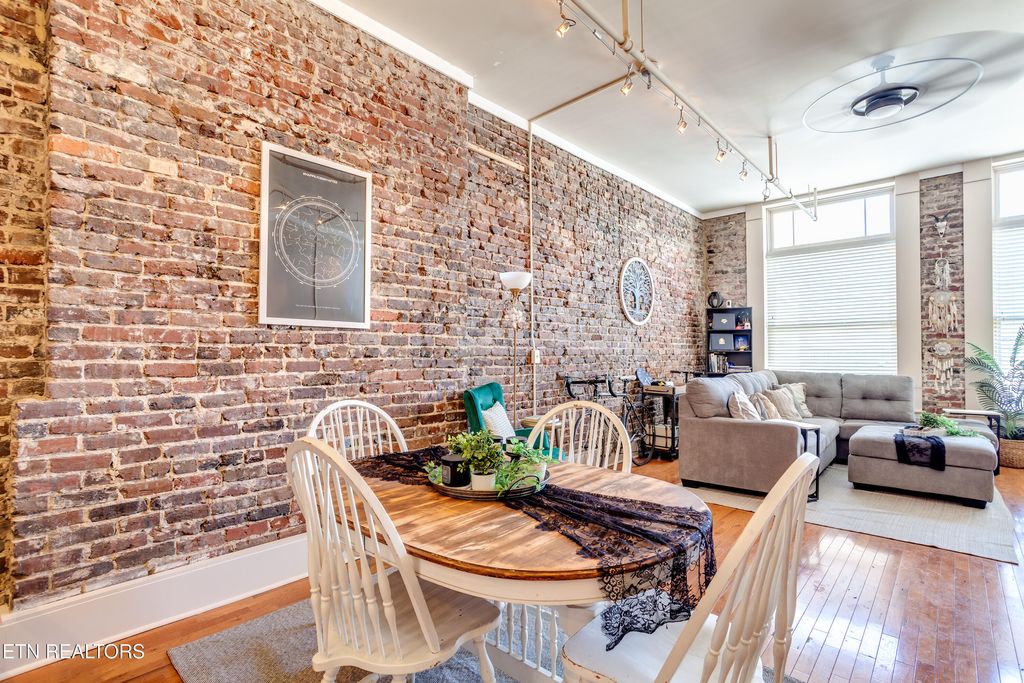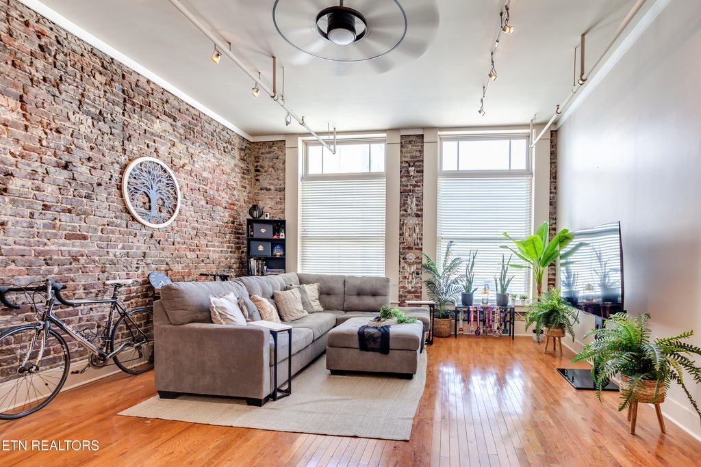 Welcome to the Phoenix building this charming historical apartment is located on the fifth floor. This elegant residence showcases a blend of classic architecture and modern amenities, making it an ideal home for those seeking a truly unique downtown living experience that is steps away from numerous entertainment venues and events held in downtown Knoxville! Upon entering this apartment, you will be captivated by the historic charm paired flawlessly with modern twists at every corner. The original hardwood floors, meticulously restored to their former glory, guide you throughout, adding a touch of timeless elegance. Extended ceilings with exposed architectural elements and large windows create an airy and bright atmosphere, allowing natural light to pour in. The living area is a true highlight, featuring a spacious layout. This open concept design enhances the apartment's overall flow, making it perfect for both relaxed living and entertaining guests. The kitchen has been thoughtfully updated with modern appliances while maintaining the historical essence. The combination of contemporary cabinetry, sleek countertops, and stainless-steel appliances creates a harmonious balance between historic and modern, making this space a delight for any culinary enthusiast and entertainer. The apartment offers two generous bedrooms, each providing a peaceful retreat from the bustling city below. As you ascend to the fifth floor, you will appreciate the serene ambiance that comes with residing above the busy streets of downtown. The building's historic charm extends to the common areas, where the shops offer intricate architectural details that add to the overall allure. Residents also have access to a private storage area in the basement through keypad entry to individual storage cages at an additional monthly fee. This apartment offers a coveted lifestyle with an array of amenities just moments away. Fine dining establishments, art galleries, boutiques, and entertainment venues are all within walking distance, ensuring that every convenience and cultural experience is easily accessible and combines the best of both worlds: the enchantment of the past and the comforts of modern living. Do not miss out on this fleeting opportunity to bringing the dream of downtown living to reality.