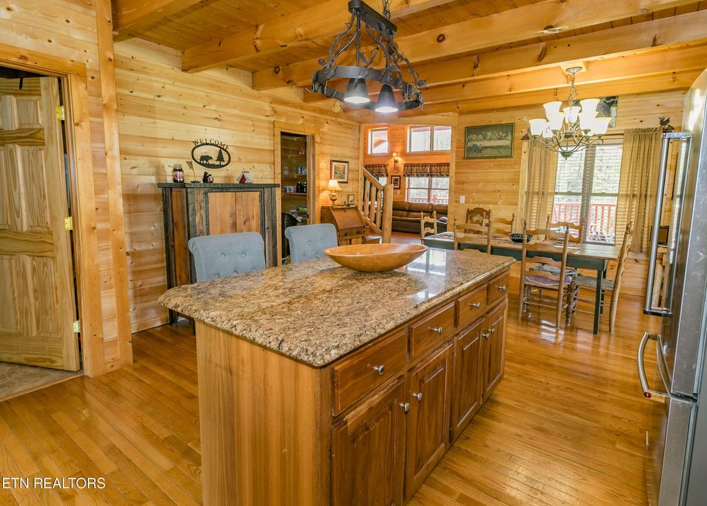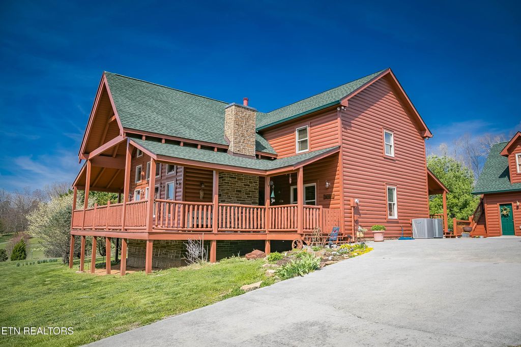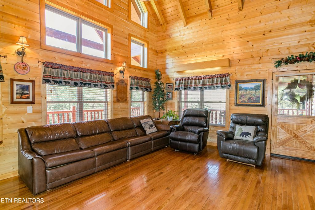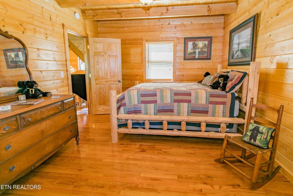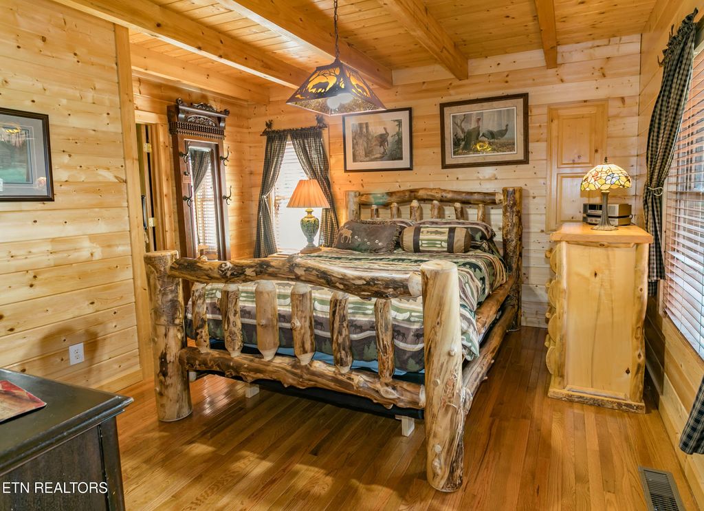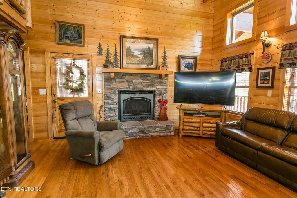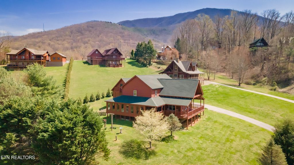 This beautiful cabin with 2784 sq. ft. 4-bedroom, 4-bath cabin in Wears Valley blends tranquility and convenience. Located minutes from the Great Smoky Mountains entrance, it's perfect for nature lovers, a forever home, or overnight rental. Recently painted in 2023 and with a new 40-year roof, it's move-in ready. Inside are two main-level bedrooms and two upstairs, each with primary suites and soaring ceilings in the living room with a gas fireplace. The upstairs features a wet bar and extra living space, ideal for a game room or loft. Enjoy mornings or evenings in the sunroom or front porch with mountain views. The oversized garage offers ample storage, pegboard walls, and a full-access attic ready for conversion. It's plumbed and wired for customization. Amenities include appliances, city water, and underground utilities. The owner maintained a large backyard garden, providing a space to start your own. The property is accessible with no steep roads. This rustic gem offers endless potential for immediate move-in or a dream retreat. You don't want to miss this property!