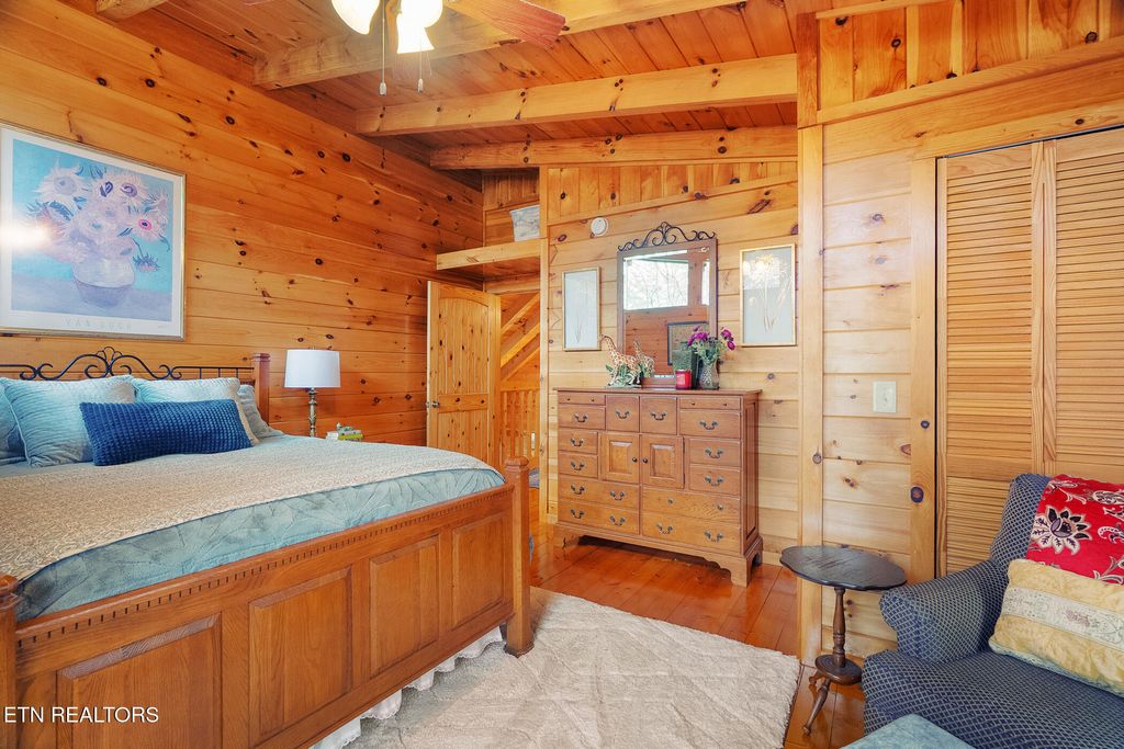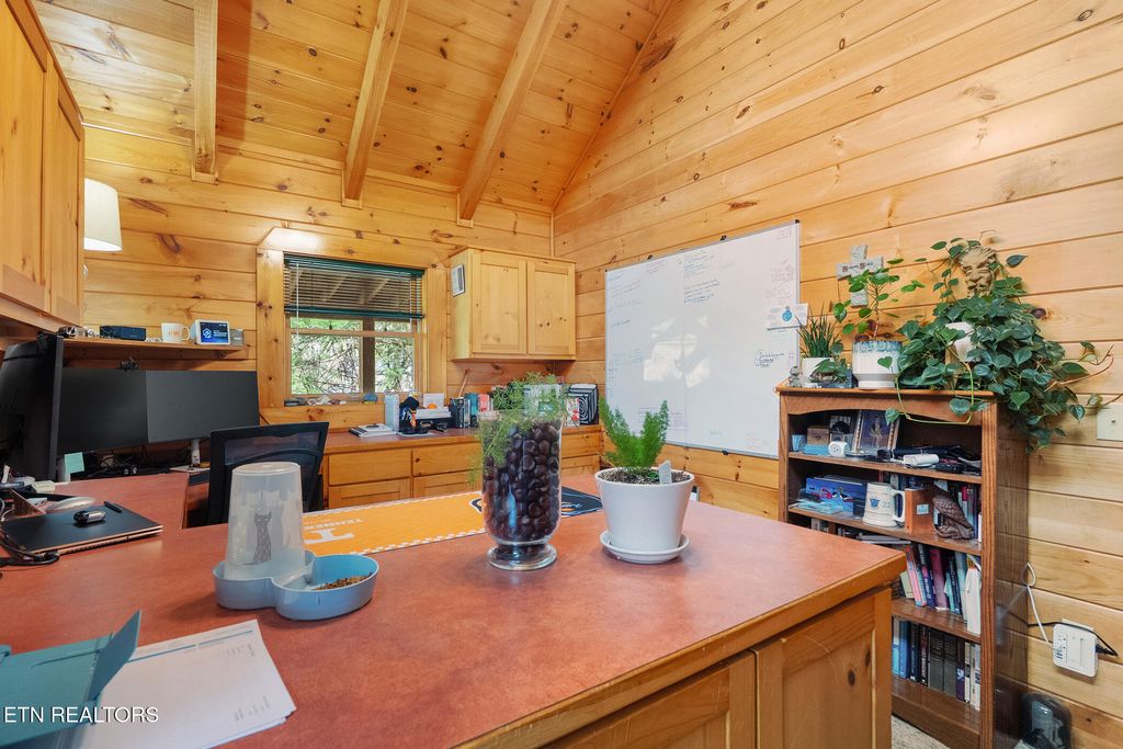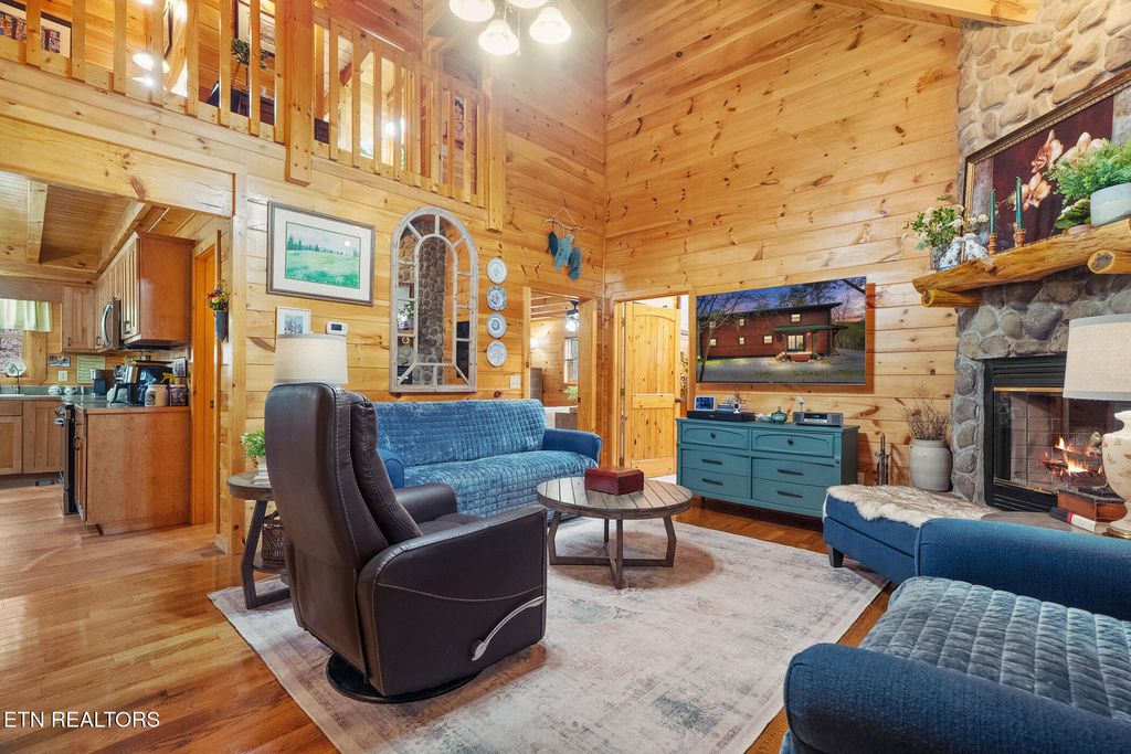 Escape to your own Smoky Mountain retreat! This custom-built log home features soaring ceilings, a stunning stone gas fireplace, and a beautifully updated primary suite on the main level. The flexible layout includes an office (or additional bedroom), a spacious family room, and an open kitchen and dining area--ideal for entertaining.