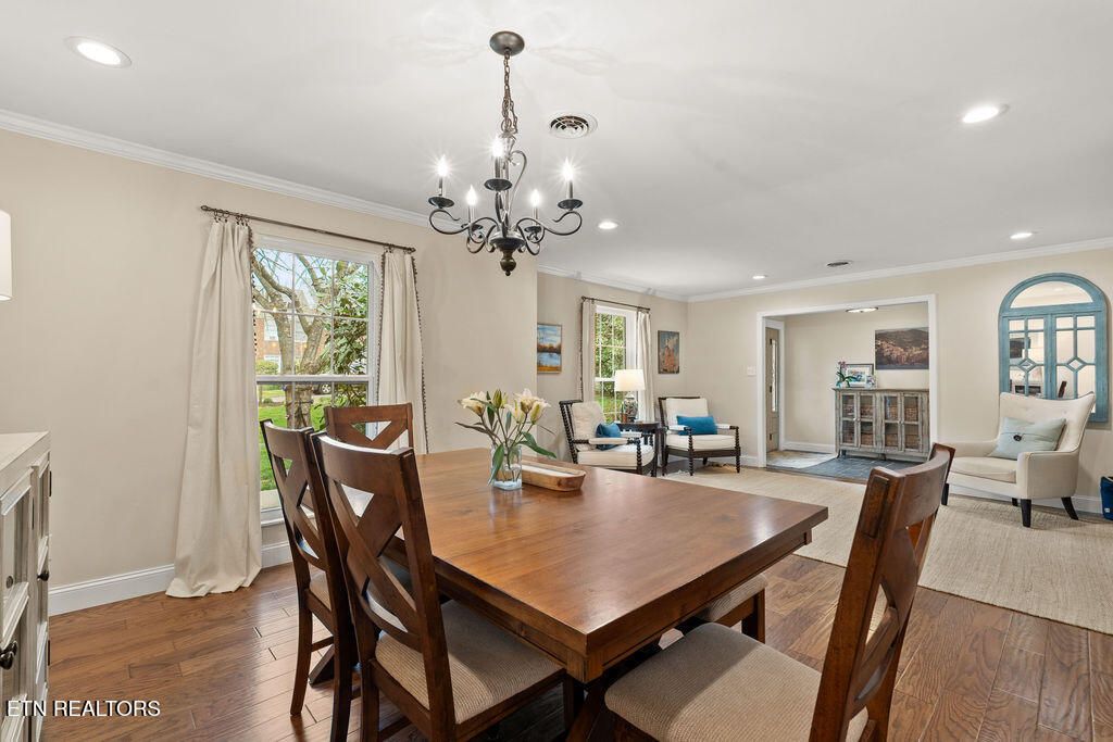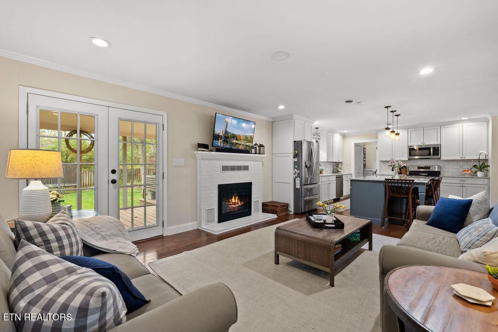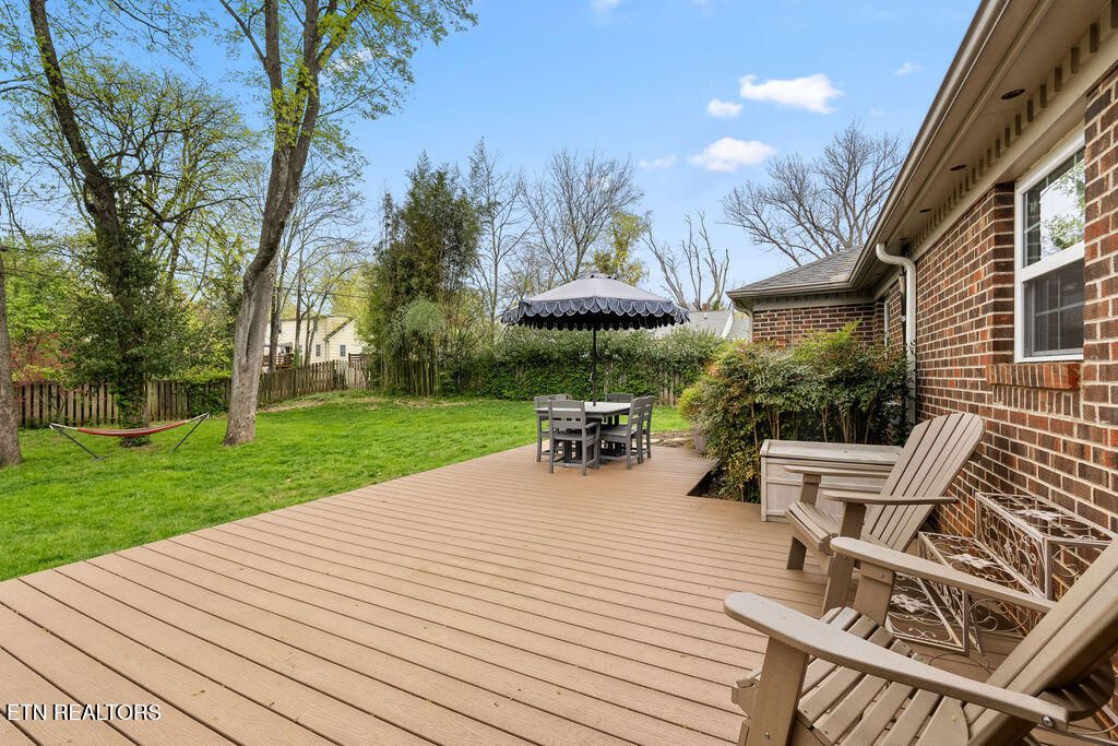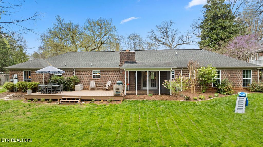 Nestled in the heart of picturesque Sequoyah Hills with easy access to the trails along Cherokee Boulevard, Sequoyah Park and Knoxville's extensive greenway system, the Plaid Apron, Sequoyah Elementary School & the library, and just minutes from Downtown and the University of Tennessee, this beautifully updated one-level home exudes warmth, character, and relaxed elegance. While originally constructed in 1977, this home has been impressively renovated with both style and function in mind. Step into a sunny foyer that welcomes you into light-filled living and dining areas. Continue into a bright, open kitchen that features a large central island and plenty of storage. This gathering space flows seamlessly into a warm family room, complete with a wood burning fireplace. Pass through French doors and onto to a roomy screened porch outfitted with a wall-mounted television and new Trex deck. With ample room for lounging, grilling and dining, there is plenty of space to enjoy outdoor living. The large flat backyard, with its lush greenery and mature trees, as well as providing plenty of space for playing and relaxing, evokes a sense of peace and serenity. Back inside, you'll find that each bedroom features large windows and generous closets. Bathrooms are bright and modern. In addition to the three spacious bedrooms, you'll find a flexible bonus room just beyond the kitchen and laundry area that could serve as a small fourth bedroom or home office. The attached 2-car garage offers convenience and additional storage. Recent updates since 2024 include a new large Trex deck, updated gutters/drainage system, new garage door, new interior doors, new shelving system in the laundry room and a new LG dishwasher. Approx. size per appraiser is an estimate only and is not guaranteed. In addition to the aprx 2050sf interior, there is an aprx 135sf screened porch, aprx 392sf composite deck and aprx 484sf attached 2-car garage. Buyer to verify size and taxes, which are subject to change.