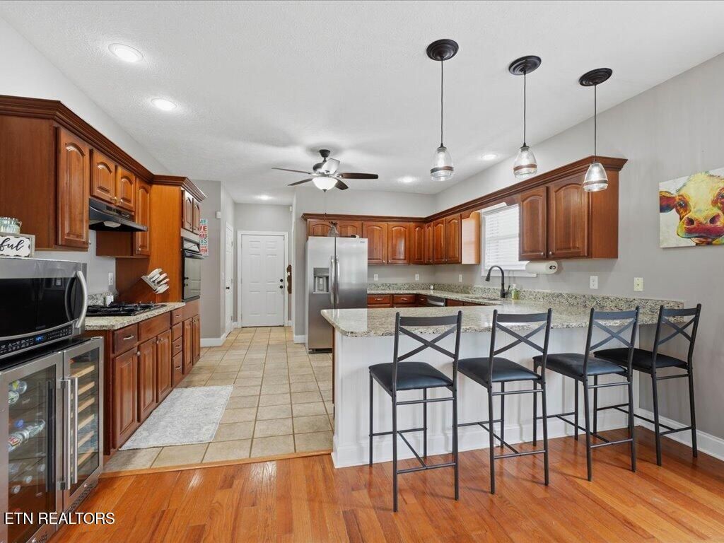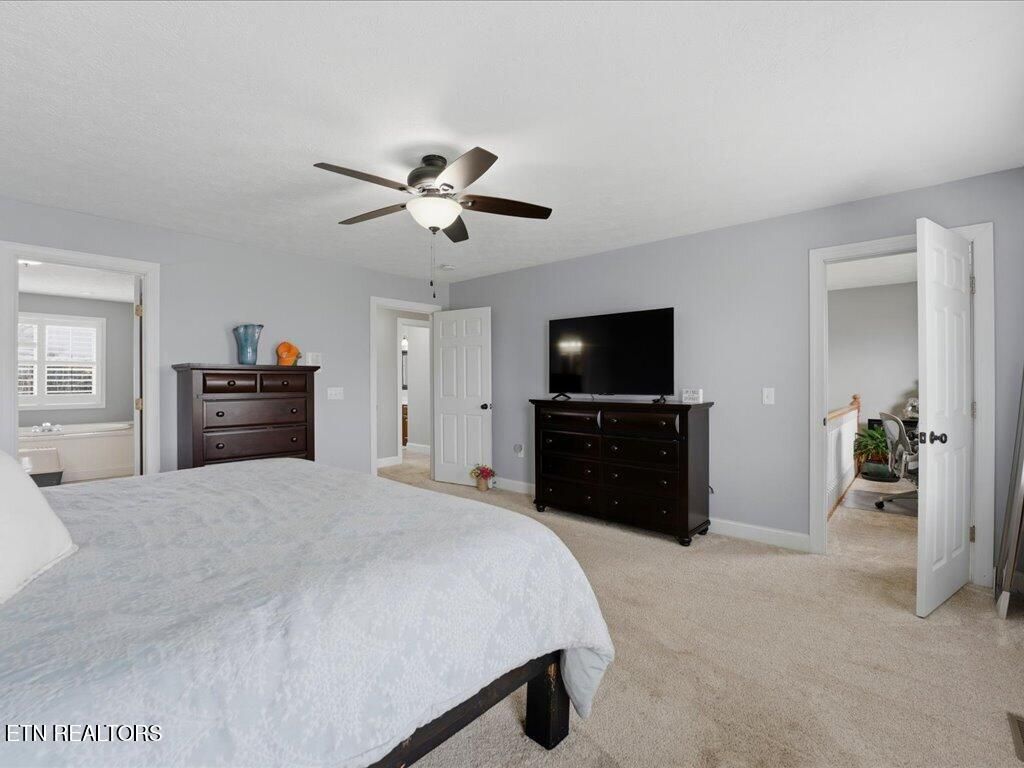 Out back, the large deck is where this house really earns its keep. There's a fire pit area in the yard, a fenced-in space for kids and dogs, and on a clear day you can catch mountain views that remind you why East Tennessee is such a great place to live. The oversized two-car garage gives you room for vehicles and actual storage. And with the natural gas furnace replaced in 2025, the big-ticket items are taken care of.