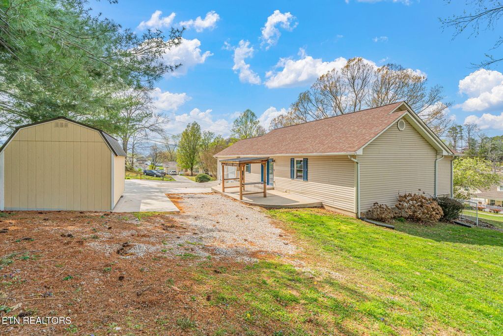 Claim your corner of East Tennessee in Jacksboro, TN, on a rare double lot where mountain horizons and open-country calm set the daily backdrop. From the first turn into the property, you will feel the difference. Bring the crew, bring the RV, bring the plans, this driveway space is built for weekends that turn into memories, with room for guests to park comfortably and plenty of space to stage an outdoor hangout, games, or a relaxed evening under the stars. Step inside and enjoy open-concept flow that keeps conversations moving from living room to kitchen without anyone feeling boxed in. A storage-rich kitchen with a gas stove brings real heat for real cooking, whether it is Tuesday tacos or holiday hosting, and there is enough cabinet space to keep counters clear and your routines effortless. Everything you need lives on one level, because comfort should not require stairs, and the layout makes daily living feel simple, connected, and inviting. The primary suite is the reset button at the end of the day, featuring a sleek walk-in shower and a walk-in closet that actually keeps up. Two additional bedrooms and a second full bath add flexibility for guests, hobbies, work-from-home life, or whatever season you are in. Outside, the lifestyle expands. Open space, fresh air, and those scenic views give you a sense of breathing room that is hard to find. Open-concept ease inside is matched by practical extras outside, including bonus shed space that helps keep clutter out of sight and life in motion. A true two-car garage plus extra storage means your vehicles get a home, and so does everything that comes with a full life. Minutes from lake days, trail time, parks, and everyday errands, this address makes spontaneity easy. And when Knoxville calls, the interstate is right there, close enough for commuting, far enough to keep your peace.