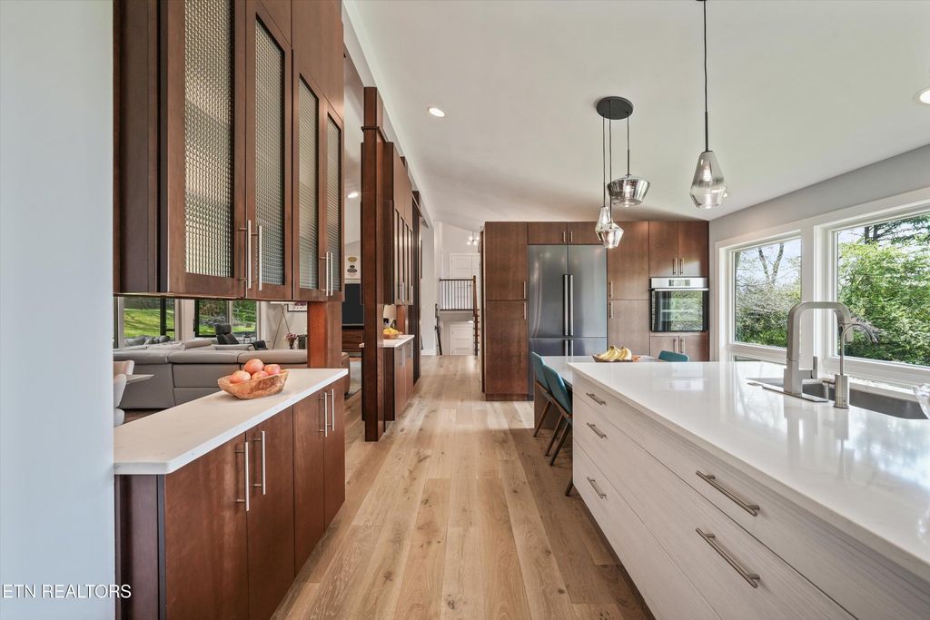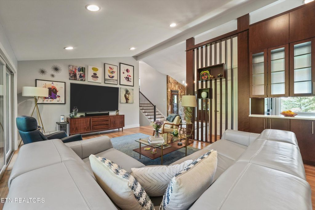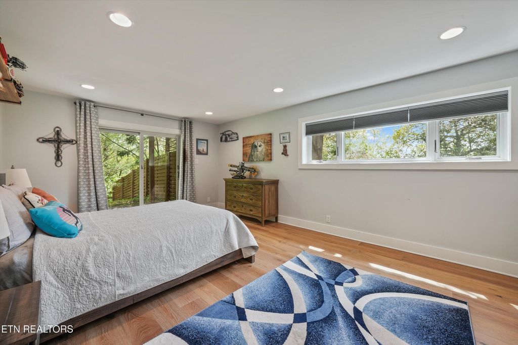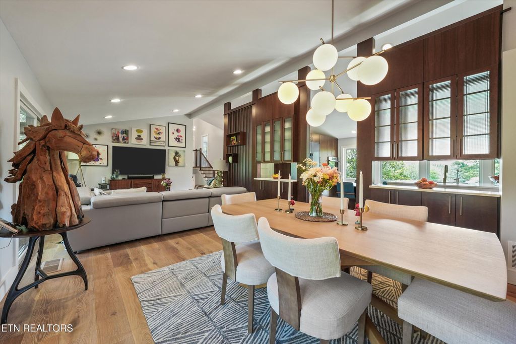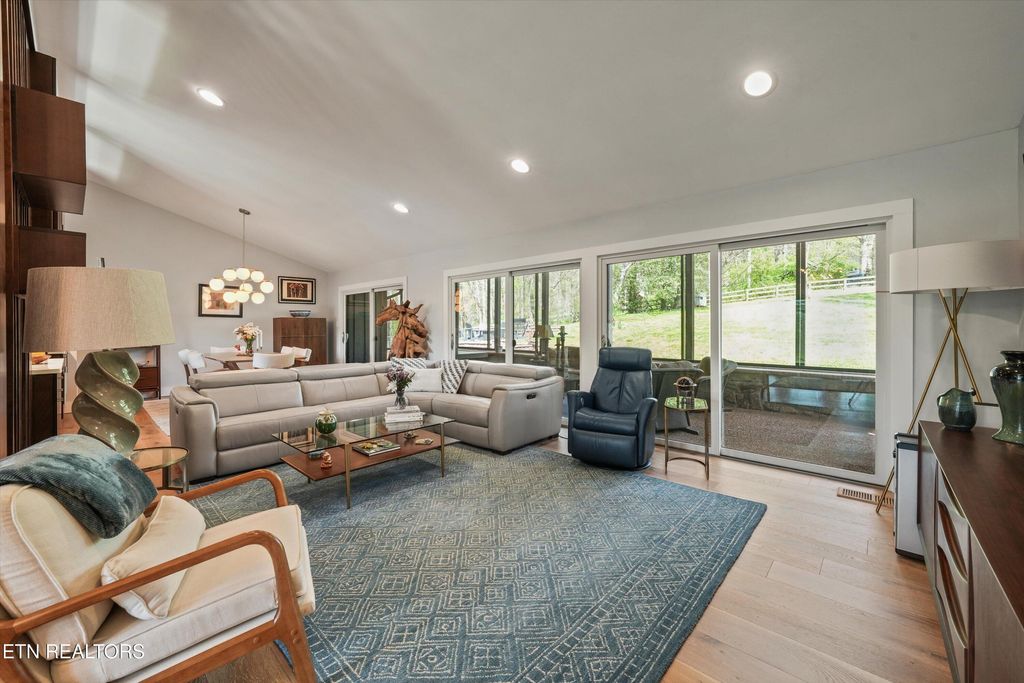 Tucked into one of Knoxville's most sought-after neighborhoods, Lakemoor Hills, this stunning lakeview estate offers the perfect blend of modern luxury and relaxed, lakeside living with coveted lake access to match. Set on an expansive 1.9 acres across three lots, this home has been completely reimagined through a massive renovation, showcasing a striking modern design and an effortless open floor plan. At the heart of the home, a show-stopping gourmet kitchen is framed by dramatic floor-to-ceiling windows, flooding the space with natural light and creating a seamless connection to the outdoors. Designed with entertaining in mind, the home features an enormous screened-in back porch overlooking a private, fenced yard, ideal for hosting gatherings or enjoying quiet evenings. Just beyond, a beautifully crafted paver patio and dreamy fire pit create the ultimate outdoor retreat. Inside, every detail has been elevated with high-end finishes, including designer lighting, a new roof, and the added peace of mind of a whole-house generator. The bedrooms are exceptionally large, each filled with sunlight and offering serene spaces to unwind (two even feature a private balcony). The luxurious primary suite feels like a five-star escape, complete with a spa-inspired bath and an impressively generous closet designed for both function and indulgence. The lower level is an entertainer's dream, boasting a spacious rec room with a full bar and a mini kitchen, perfect for game nights, hosting guests, or multi-generational living. An oversized garage and abundant storage ensure there's room for everything. This is a rare opportunity to own a fully renovated, modern home with acreage, privacy, and lake access (community boat ramp) in one of Knoxville's favorite communities.
