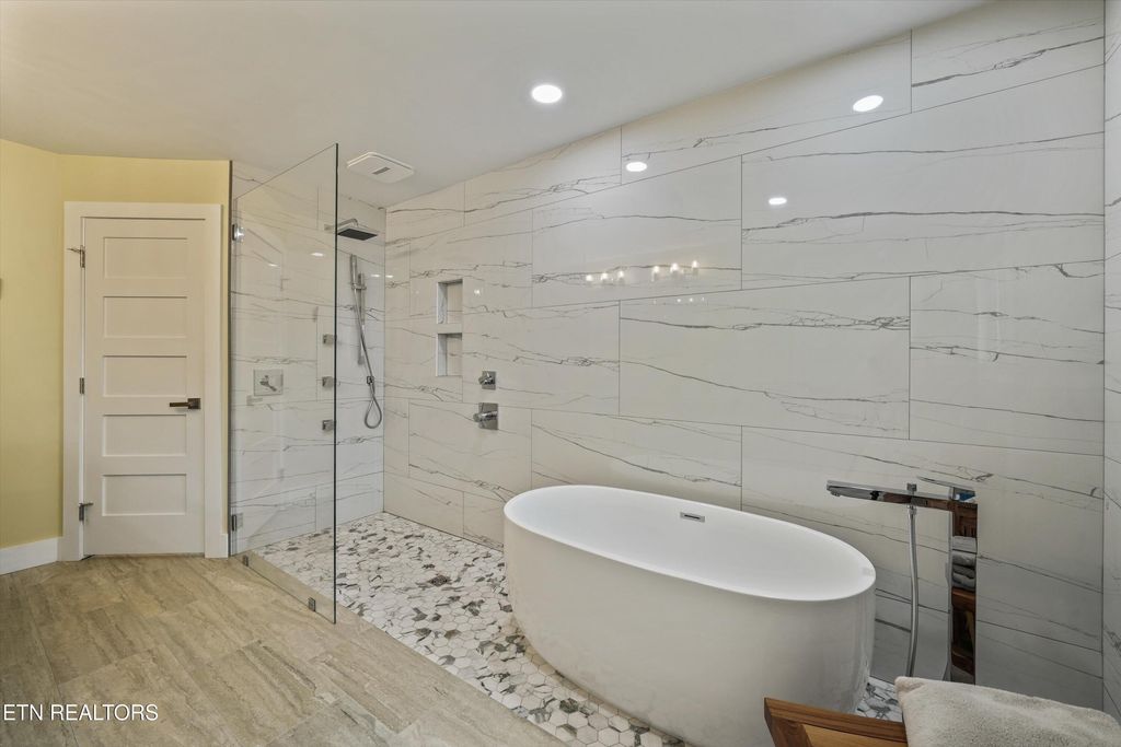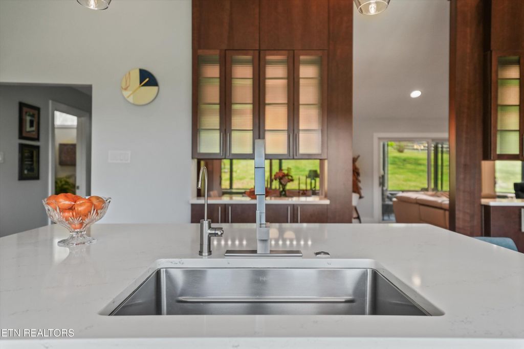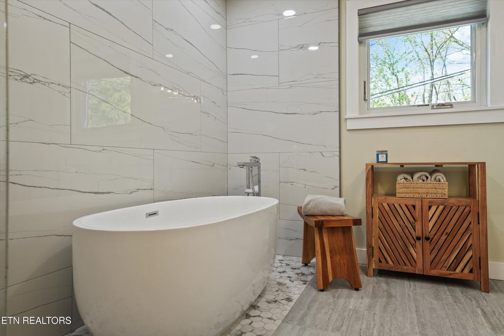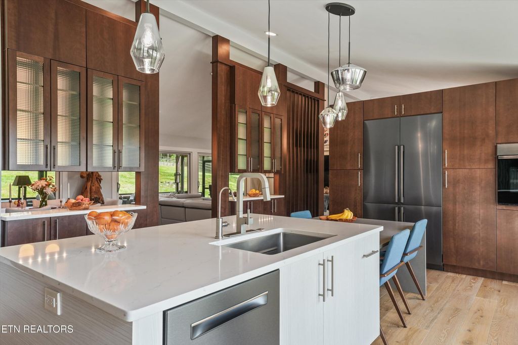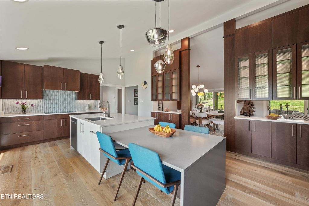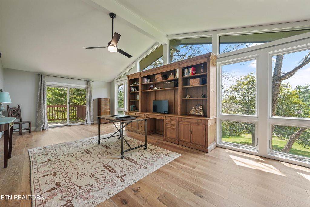 Tucked into one of Knoxville's most sought-after neighborhoods, Lakemoor Hills, this stunning lakeview estate offers the perfect blend of modern luxury and relaxed, lakeside living with coveted lake access to match. Set on an expansive 1.9 acres across three lots, this home has been completely reimagined through a massive renovation, showcasing a striking modern design and an effortless open floor plan. At the heart of the home, a show-stopping gourmet kitchen is framed by dramatic floor-to-ceiling windows, flooding the space with natural light and creating a seamless connection to the outdoors. Designed with entertaining in mind, the home features an enormous screened-in back porch overlooking a private, fenced yard, ideal for hosting gatherings or enjoying quiet evenings. Just beyond, a beautifully crafted paver patio and dreamy fire pit create the ultimate outdoor retreat. Inside, every detail has been elevated with high-end finishes, including designer lighting, a new roof, and the added peace of mind of a whole-house generator. The bedrooms are exceptionally large, each filled with sunlight and offering serene spaces to unwind (two even feature a private balcony). The luxurious primary suite feels like a five-star escape, complete with a spa-inspired bath and an impressively generous closet designed for both function and indulgence. The lower level is an entertainer's dream, boasting a spacious rec room with a full bar and a mini kitchen, perfect for game nights, hosting guests, or multi-generational living. An oversized garage and abundant storage ensure there's room for everything. This is a rare opportunity to own a fully renovated, modern home with acreage, privacy, and lake access (community boat ramp) in one of Knoxville's favorite communities.