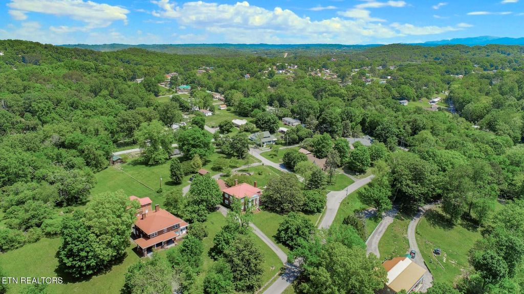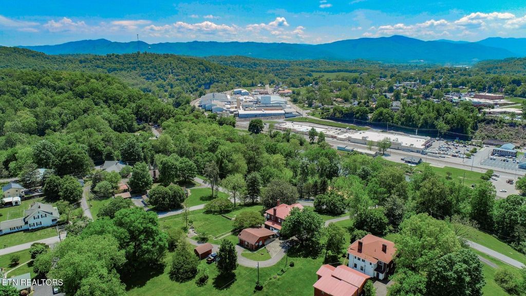 Step into a piece of American history with ''Sunnyside,'' a stately antebellum-style brick residence completed in 1915 by W.D. Stokely Sr., founding member of Stokely-Van Camp Inc. This remarkable five-bedroom, four-bath home spans 3,612 square feet and tells the story of one of the nations most influential food industry pioneers-whose legacy includes helping bring Gatorade to the world. Perched high on the scenic bluffs of Newport overlooking the Pigeon River and downtown, this prestigious property offers breathtaking mountain and skyline views. Lovingly maintained and move-in ready, the home seamlessly blends historic charm and modern comfort. Inside, you'll find timeless architectural details including eight-foot high pocket doors, original hardwood flooring throughout the main and upper levels, a stunning staircase, and a formal dining room adorned with a crystal chandelier. Two fireplaces add warmth and character, while the spacious primary suite features its own fireplace, private balcony, and a full; bath. The home also includes split HVAC, gas radiator heat, a gas water heater, and an enclosed elevator to the second floor (currently inoperable). Generous closet space and storage can be found throughout. Outdoors, the elegance continues with a welcoming veranda with locally quarried stone patio and winding stone walkways. The beautifully landscaped 2.2-acre grounds are a true sanctuary, showcasing flowering shrubs, a sunken garden, mature chestnut trees, a grand magnolia, and Japanese tulip trees. An attached guest house offers additional potential, complete with a two-car carport and a one car garage currently used for storage and ready for your finishing touches. Recent updates include a newer roof, gas-boiler, and added insulation-enhancing both comfort and efficiency. ''Sunnyside'' is more than a home-it's a rare opportunity to own a timeless estate rich in heritage, beauty, and possibility for only $140 sq. ft.! Newport is considered the peaceful side of the Smokies and this property is no exception! Close Proximity to Pigeon Forge, Dollywood, Gatlinburg, Dandridge, Morristown, Hot Springs, The Great Smoky Mtn National Park, Cosby & Big Creek Campground, Appalachian Trail, Douglas Lake, Cataloochee Valley & Maggie Valley! Welcome to The Smoky Mtns, Enjoy the Very Best of Tennessee's beauty, Natural Resources & Generous Hospitality! Drone pictures used in listing.