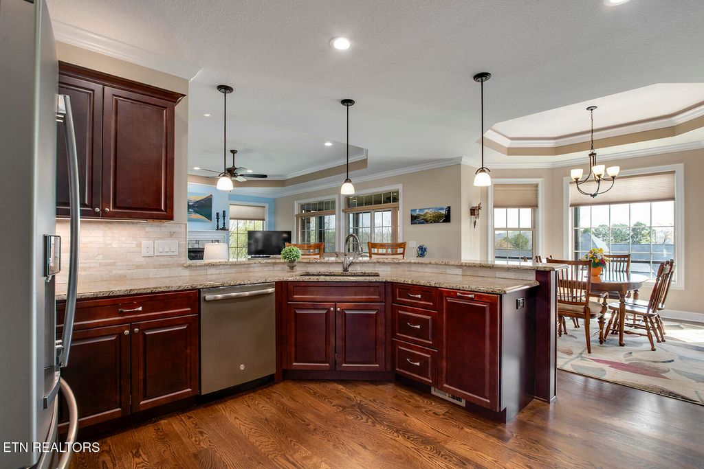 Nestled on a quiet cul-de-sac, this stunning brick and stone home offers breathtaking views of Tellico Lake and the surrounding mountains. Thoughtfully designed for both comfort and entertaining, the home features a spacious screened-in porch and expansive deck accessible from both the family room and the primary suite--perfect for enjoying unforgettable sunrises and sunsets.