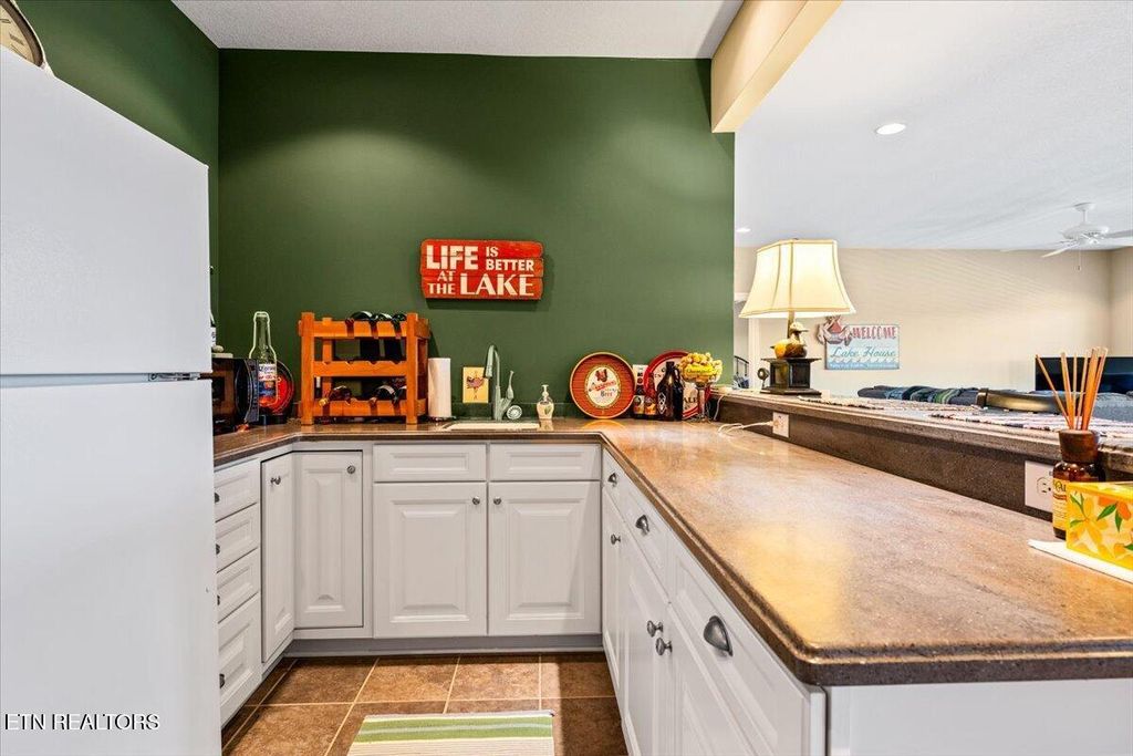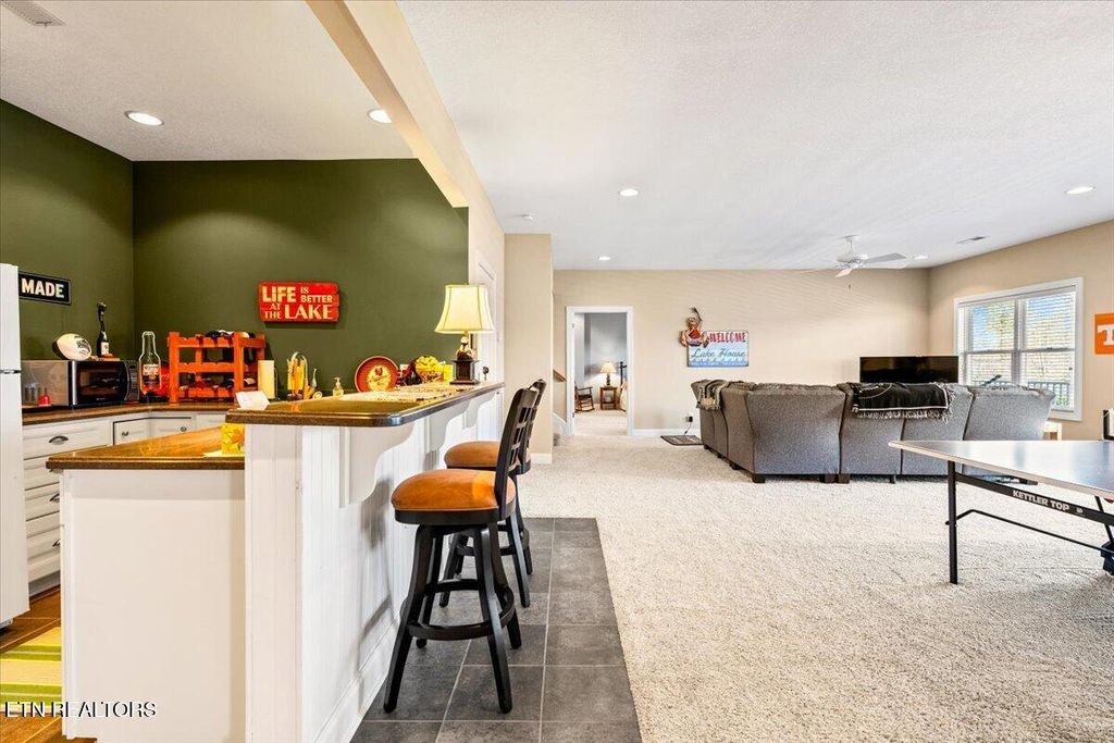 The lower level is built for gathering, with an enormous family room and a beautifully appointed wet bar featuring a refrigerator, sink, cabinets, and microwave. This level also includes a third lake-view suite with a large closet and tub/shower bath, along with two additional bedrooms sharing a full bath--one of them with yet another lake view. The walkout lower deck is also finished in composite decking and protected overhead with metal covering, creating a comfortable all-weather outdoor space for relaxing after a day on the water or the golf course.