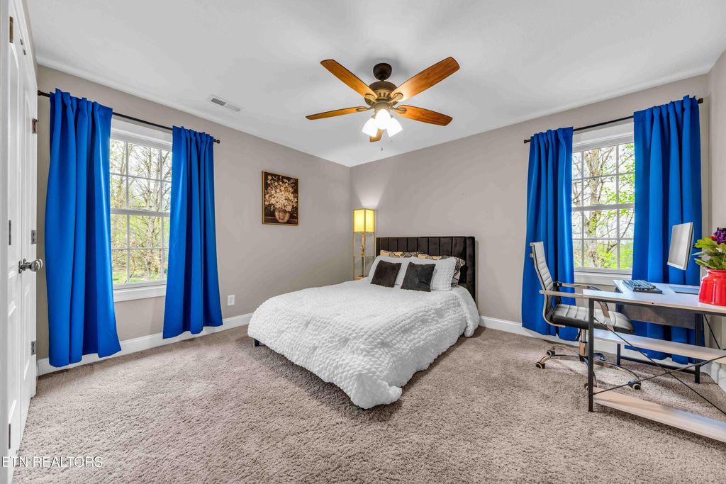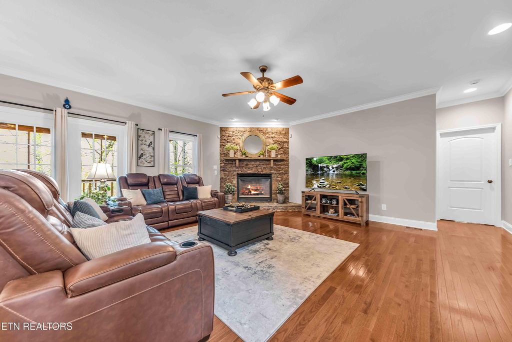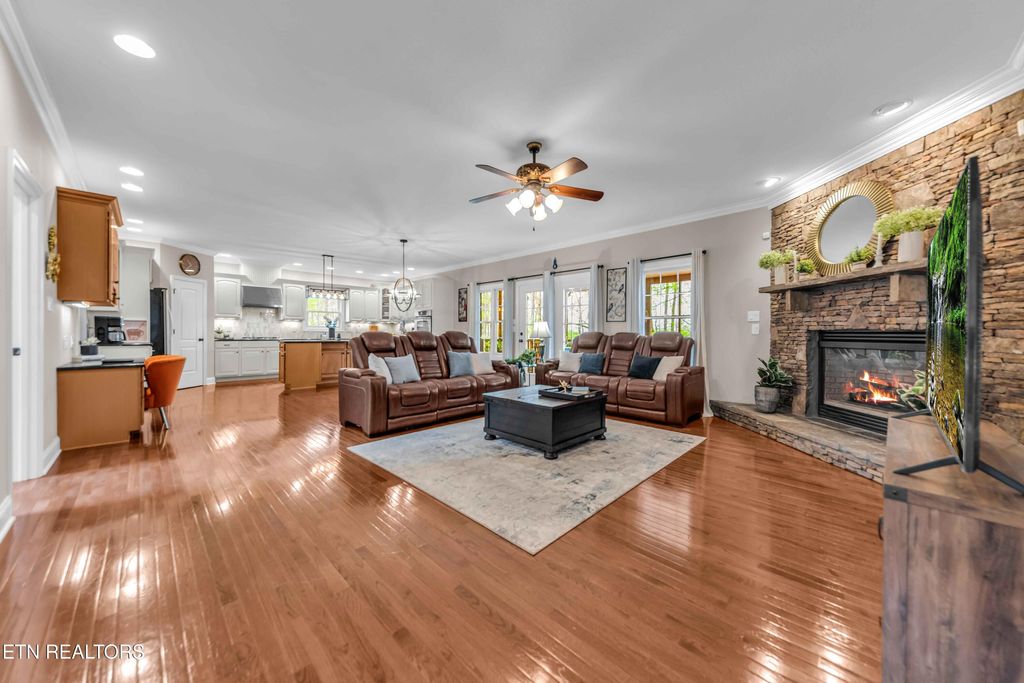 Rare cul-de-sac find in Fox Run, one of Farragut's most sought-after communities. This all-brick 5-bedroom, 4.5-bath home delivers over 4,700 sq ft across three fully finished levels, with a layout designed for how families actually live. The main level features a private office, open kitchen and family room, and a primary suite, all on one floor. Upstairs, three additional bedrooms and a large rec area give everyone their own space. The finished walkout basement adds a fifth bedroom with en suite bath, a second rec room, and a 200 sq ft storage room, rare at this price point. Step outside to a covered deck or lower patio overlooking a rolling, wooded cul-de-sac lot. Three-car side-entry garage. Fox Run amenities include two pools, clubhouse, tennis and pickleball courts. Zoned for all Farragut schools. Move-in ready.