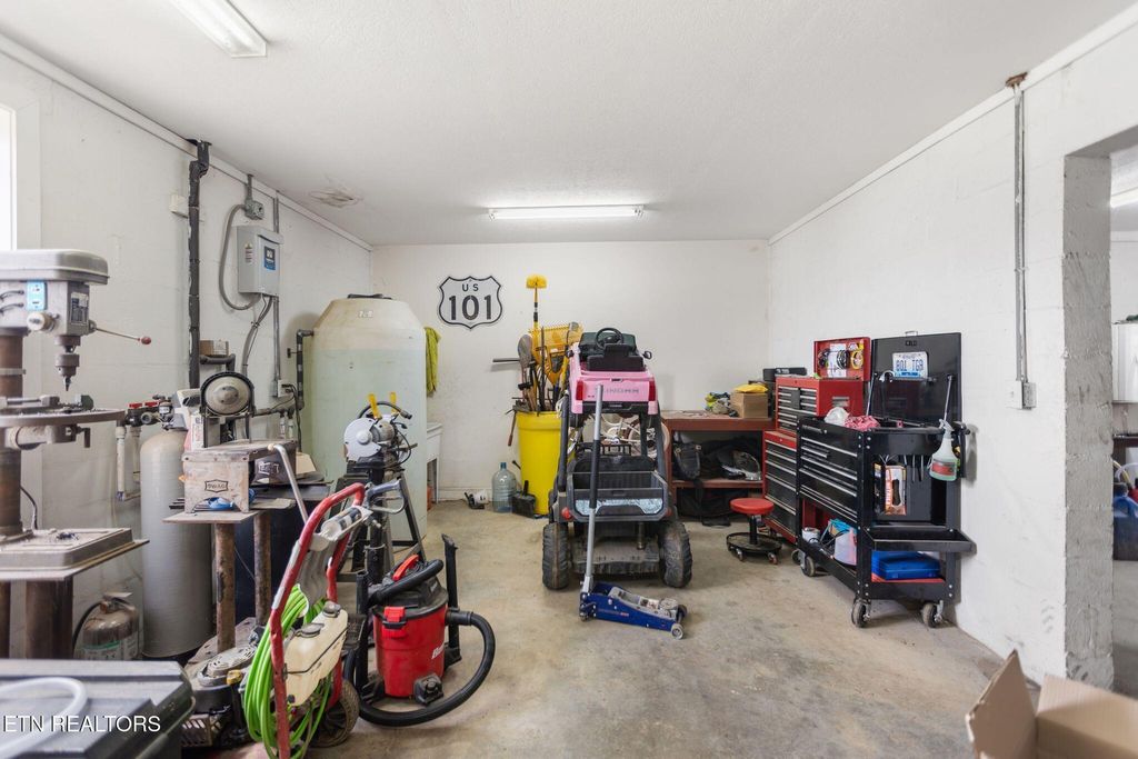 The main residence is a spacious basement rancher built in 2010, offering approximately 4384 sqft. The main level features vaulted ceilings and an open-concept living room, kitchen, and dining area, complete with solid wood cabinetry and granite countertops. The oversized primary suite offers French doors leading to the porch, a large walk-in closet, and an ensuite bath with his and her vanities and a walk-in shower. On the opposite side of the home, you'll find two additional bedrooms, a hall bathroom, laundry room, and an oversized family room or optional 4th bedroom. Downstairs provides even more flexibility with an office, mudroom with a wood burning stove, storage space, and a 2-car garage with workshop area.