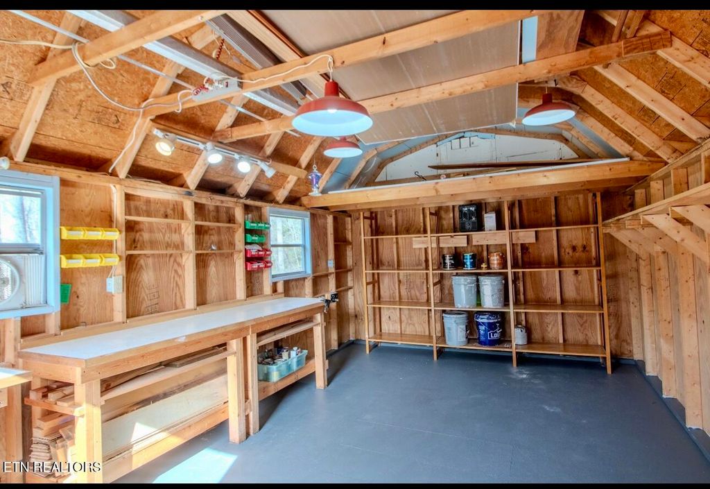 Storage Building is wired with electric and makes a great workshop