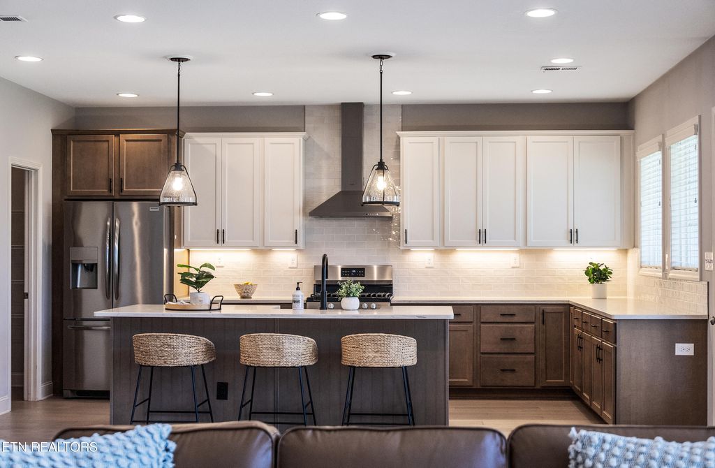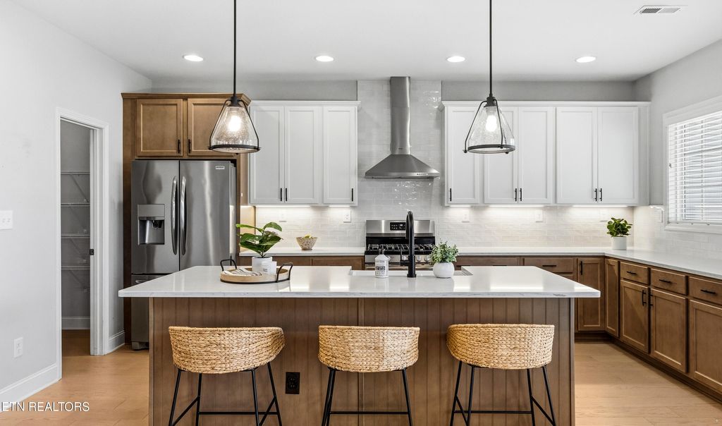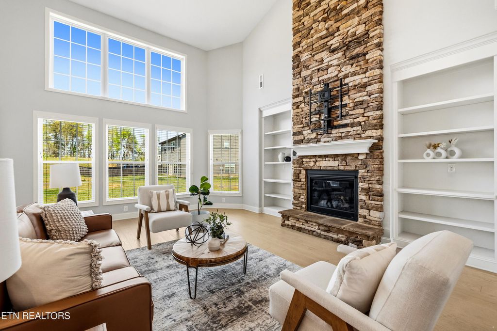 Welcome to this stunning, nearly new home in the highly sought-after Laurel Ridge community of Hardin Valley! Built just five years ago, this beautiful Ball Homes 'Hudson' plan offers the perfect blend of modern design, functional space and timeless style.From the moment you step inside, you're greeted by a dramatic two-story foyer and soaring family room filled with natural light, anchored by an impressive two-story stone fireplace that creates a striking focal point. The open-concept layout is ideal for both everyday living and entertaining, featuring gorgeous hardwood floors throughout the main level and seamless flow between living spaces.The heart of the home is the impressive kitchen, complete with a massive island, farmhouse sink, quartz countertops, warm wood and crisp white cabinetry, stainless appliances, and an oversized pantry. A convenient mudroom area with drop zone adds everyday practicality, while the main level also includes a bedroom and full bath--perfect for guests--plus a dedicated dining room and office.Upstairs, retreat to the expansive primary suite featuring a cozy sitting area and a luxurious ensuite bath with dual vanities, quartz countertops, tile flooring, a large soaking tub, and a beautifully tiled shower. The spacious walk-in closet completes this private oasis. Three additional bedrooms and another full bath provide plenty of room for family or guests.Step outside to enjoy the covered back porch overlooking a level backyard--perfect for relaxing, entertaining or play--with no neighbors directly behind for added privacy and peaceful surroundings. Tucked away on a quiet street at the back of the neighborhood, you'll enjoy minimal through traffic. Laurel Ridge residents love the vibrant neighborhood atmosphere, complete with sidewalks, seasonal gatherings and community events. Amenities include a pool with toddler splash area, a pavilion with a stone fireplace and picnic and grilling areas. Conveniently located with easy access to Pellissippi Parkway, making commutes to Oak Ridge, downtown Knoxville, and the University of Tennessee a breeze--this home truly has it all.