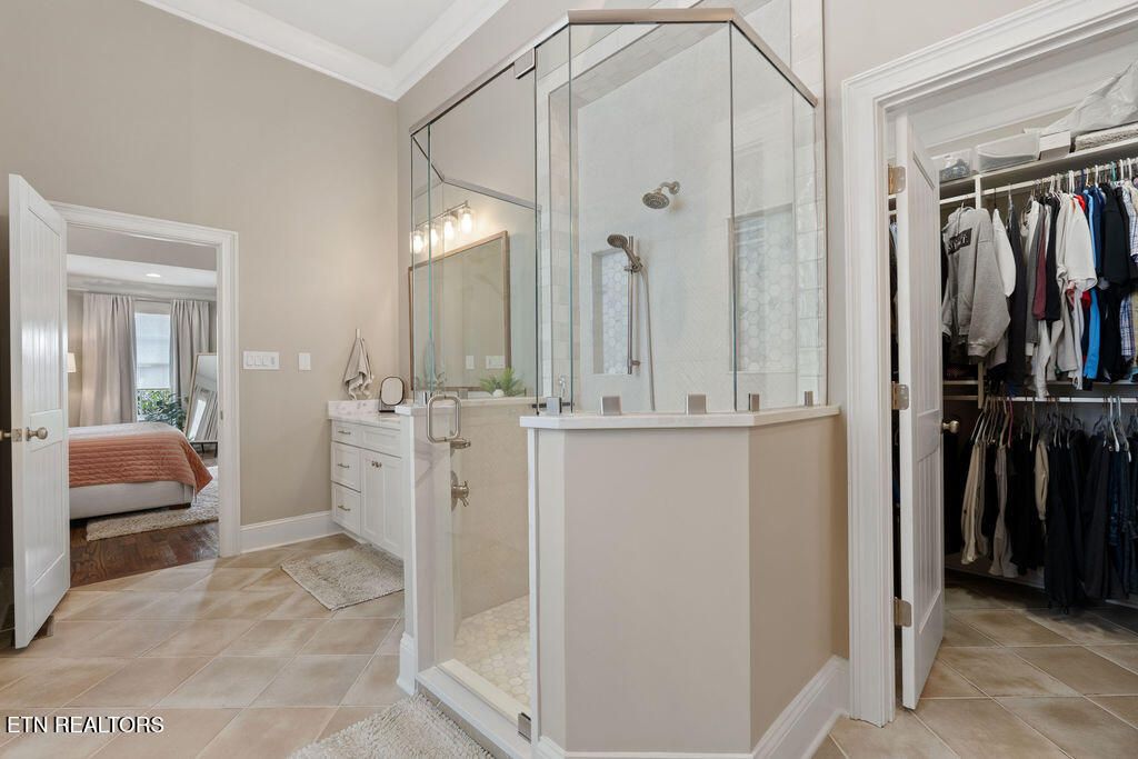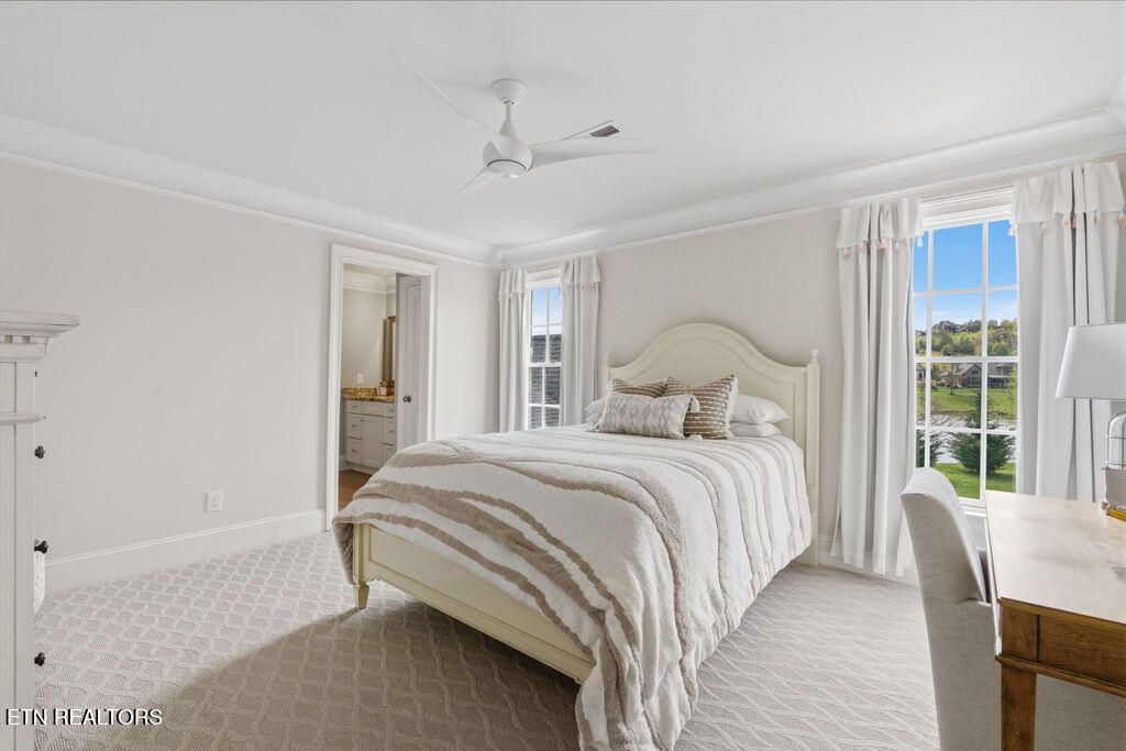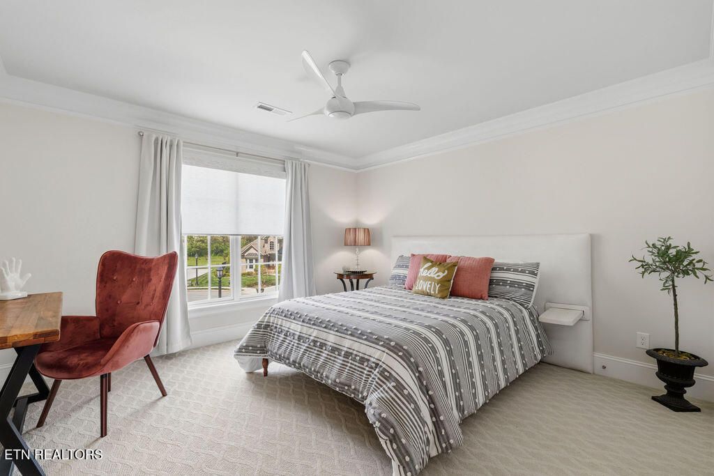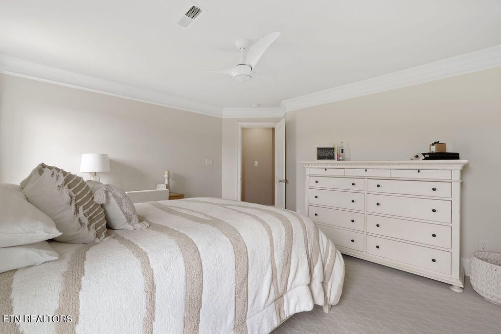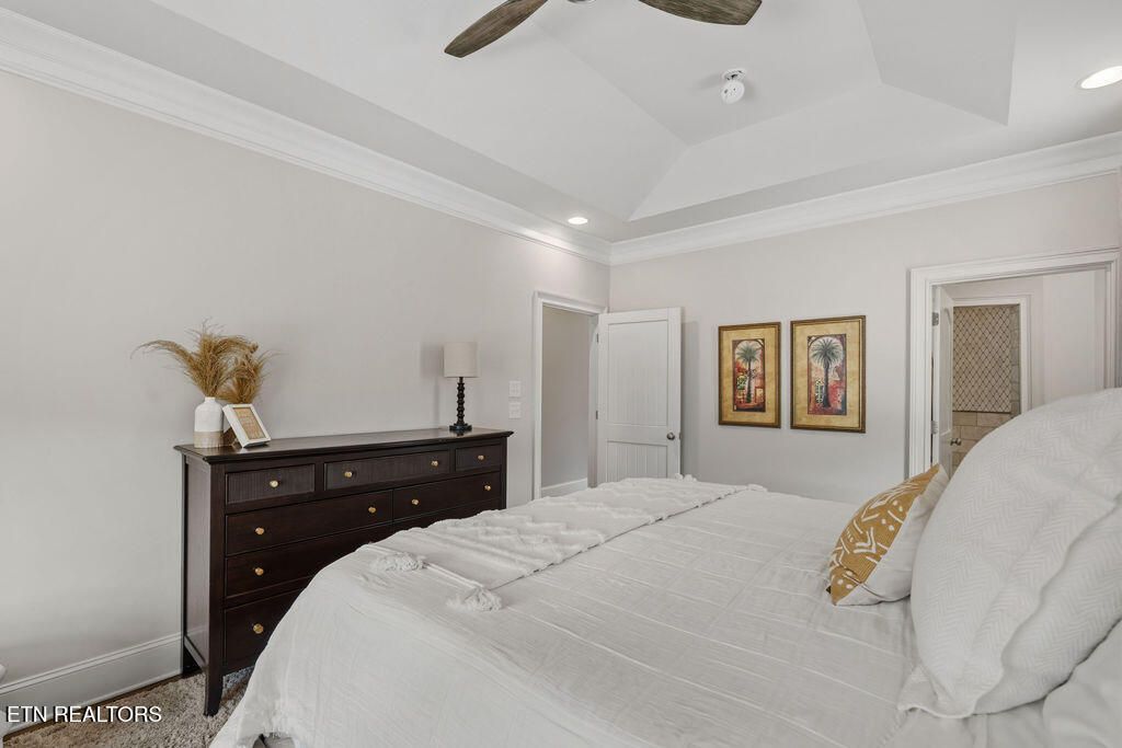The primary suite is a sanctuary with its tray ceilings and french doors that open to the covered porch that has big screen TV for all those fall football games to be enjoyed outdoors!! It boasts double vanities, newly remodeled designer tile shower & large free standing soaker tub.