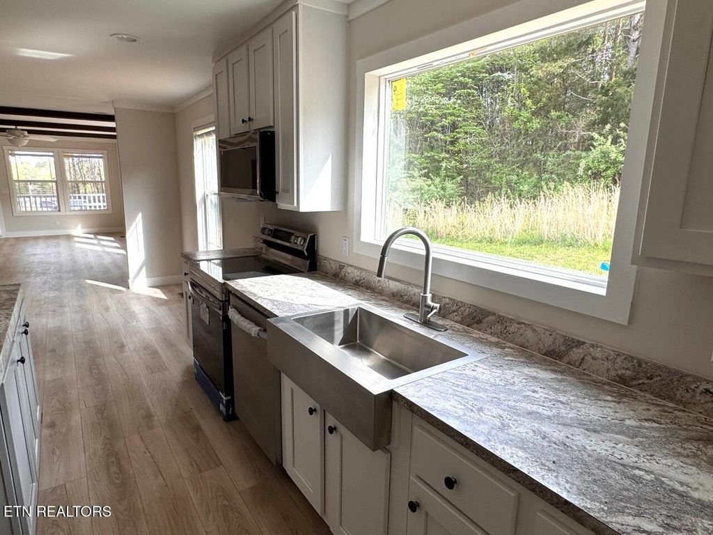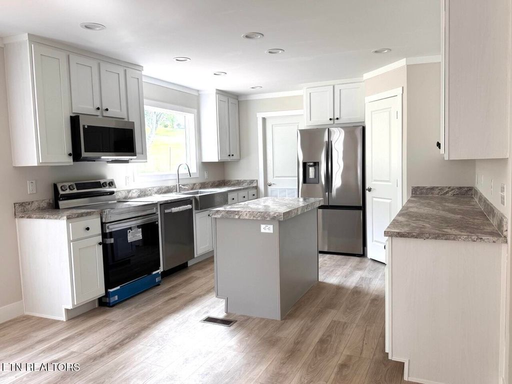 The open kitchen has tons of counter space and cabinetry on BOTH sides of the room for all of your meal prepping and storing your favorite cooking gadgets. New stainless steel appliances, an island, pantry and oversized window above the sink complete the dream kitchen you've been searching for.