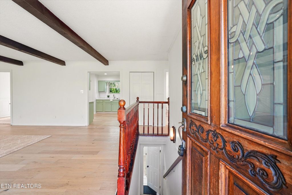 Basement rancher with finished lower level for a flexible bonus space. Main level features a living room with wood beams, built-in shelving, and natural light. Dedicated dining room located off the kitchen. Kitchen updated with refinished cabinets, quartz countertops, and stainless steel appliances. Primary suite includes a sizable closet and updated bath. Beautiful hardwood flooring, updated lighting fixtures, and fresh interior paint are all additional highlights.