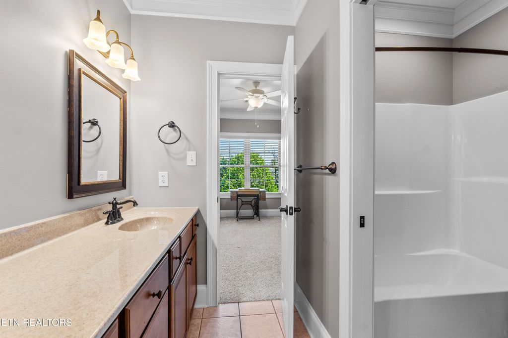 Upstairs, the spacious primary suite features a high trey ceiling, a massive 20x10 walk-in closet, and a luxurious bath with double vanities, a custom tiled shower, jetted tub, and tile flooring. The laundry room is conveniently located near the bedrooms. You'll also find a bedroom with en suite bath and two additional bedrooms connected by a Jack-and-Jill bath, plus ample attic storage.