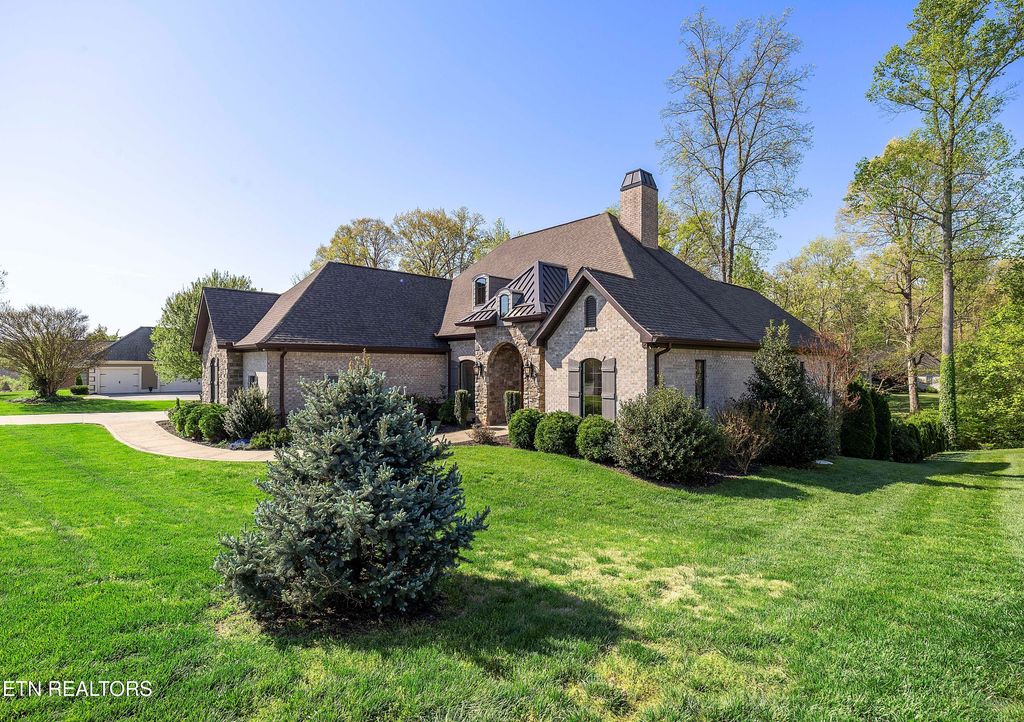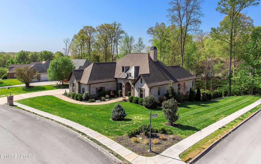 From the moment you arrive, the stately façade, featuring stone and brick construction, arched front entryway with solid mahogany door, and manicured landscaping, sets the tone for the elegance within.