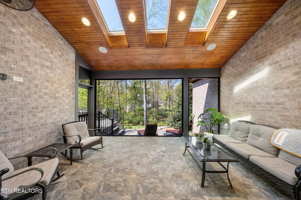 Step outside to enjoy serene outdoor living. The covered screened porch adorned with skylights, tongue and groove ceiling, oscillating fans, and porcelain tile overlook the fenced back yard and adjacent terrace--perfect for morning coffee, entertaining, or evening relaxation.