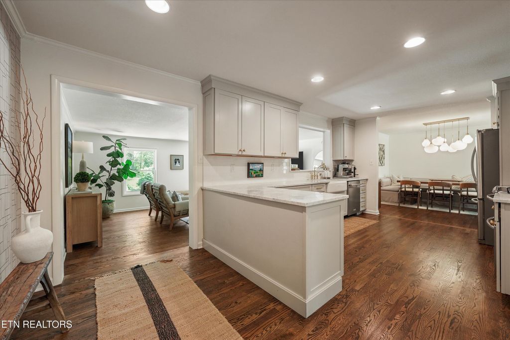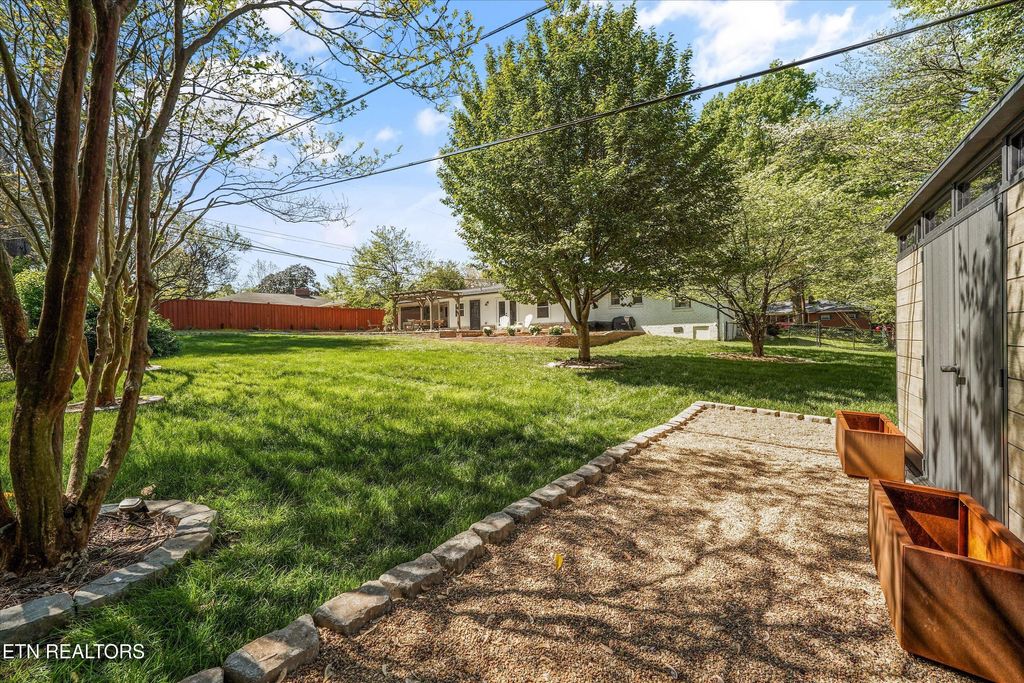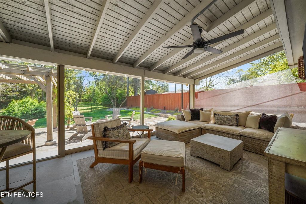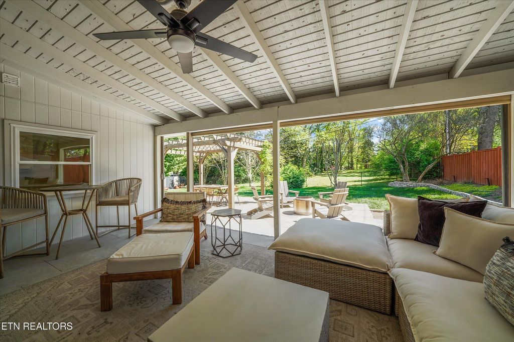 The backyard is a standout feature. A newly completed multi-tier patio creates a seamless indoor-outdoor living experience that is ideal for entertaining. A pergola covered dining space, grilling area, and motorized screened in porch makes it easy to enjoy the beautiful Knoxville spring weather. This home is perfect for hosting guests or to enjoy quiet mornings on the patio sipping coffee.