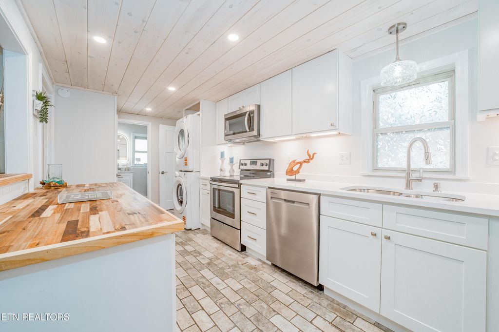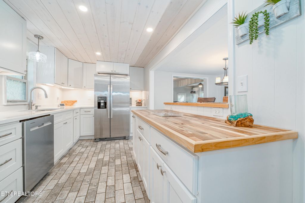 This 4-bedroom, 2-bath home with bonus space offers approximately 2,000 square feet and has been thoughtfully updated while maintaining a warm lake-house feel. Inside you'll find all new plumbing and updated electrical, along with a newly renovated kitchen featuring a beautiful wood ceiling that creates a cozy, inviting centerpiece for the home.