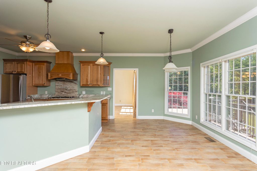 The open concept is designed for wonderful views of Watts Bar Lake from the kitchen, dining room and living room.