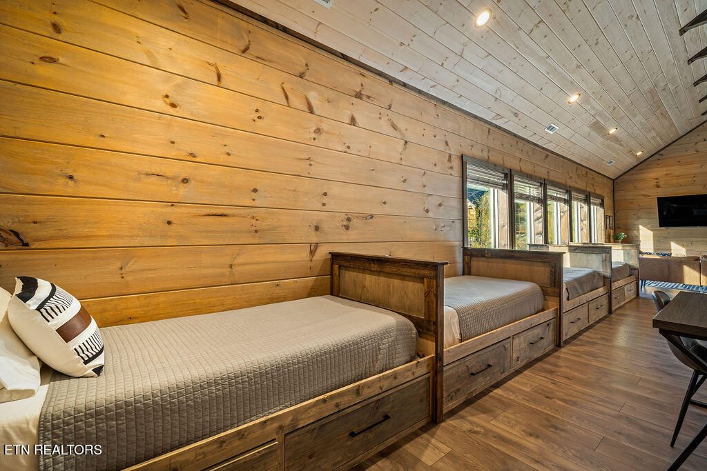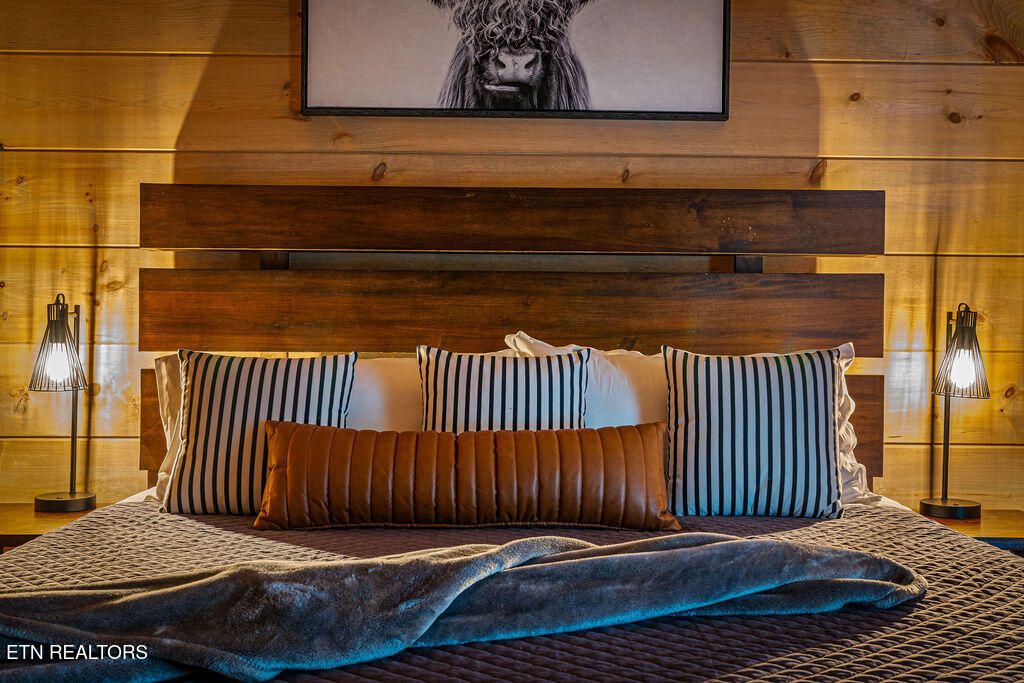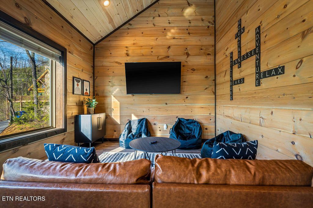 TOTAL SMOKY MOUNTAIN EXPERIENCE! Pine Top Escape is a stunning rustic-modern retreat designed to deliver the kind of guest experience that drives strong short-term rental performance. Packed with amenities, multiple entertainment zones, and three levels of outdoor living, this cabin is built for unforgettable stays and repeat bookings. Located in the highly sought-after Cobbly Nob community, this recently constructed and meticulously maintained 3-bedroom, 3.5-bath cabin with a spacious loft offers the perfect blend of privacy, seasonal mountain views, and easy access to Gatlinburg's top attractions. Currently configured to comfortably sleep 10 guests, with the ability to increase to 12, this layout gives owners immediate income potential with built-in upside for higher occupancy and revenue. Inside, you'll find a warm and inviting interior with tasteful finishes throughout. The fully equipped kitchen features a dedicated coffee and tea station, while the dining area comfortably seats ten, making it ideal for hosting larger groups. The main level living room is perfect for gathering, and the king suite offers an ensuite bath and private deck access. Step outside to enjoy multiple covered decks on all three levels, complete with a hot tub, gas grill, outdoor dining area, and peaceful wooded surroundings. Out front, you have ample parking and a fire pit. Spacious Upper level teen hangout is a standout feature and guest favorite is perfect for kids and teens, offering four twin XL beds, a hangout space with a smart TV, plus a dedicated workspace with monitor and charging station. This flexible space not only enhances the guest experience but also supports increased sleeping capacity. Extra loft style area that can be used to increase sleeping. The lower level is a guests entertainment dream, featuring a massive theater room with an 85-inch smart TV, six leather recliners, bean bags, and a custom bar. The adjoining game room includes pool table, air hockey, foosball, shuffleboard, and a retro arcade system with 60+ games--exactly what Smoky Mountain guests are looking for. A lower deck with lounge space, bed swing, and convenient half bath completes the experience. Sold fully furnished and turnkey, this property is ready to perform from day one. Located in Cobbly Nob, owners and guests enjoy access to three seasonal pools, pickleball and tennis courts, a golf course, 24-hour security, and snow removal. This is the type of cabin that checks all the boxes--strong layout, high-demand amenities, and built-in potential to increase occupancy and maximize returns. Schedule your showing today.