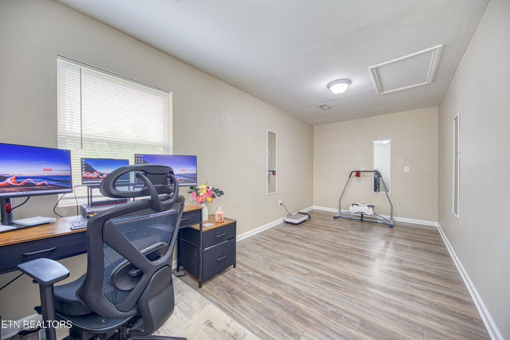 Just off the main living space, a versatile room offers the perfect setup for a home office, guest room or flex space.