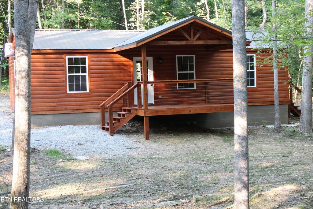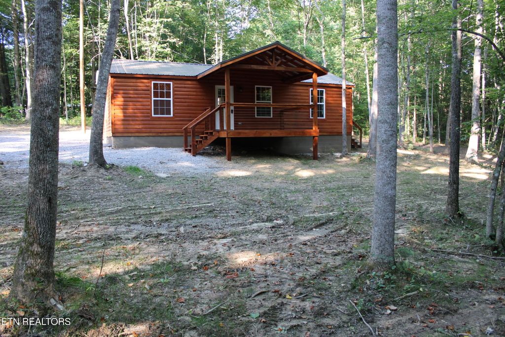 The Seller has made repairs and corrections per a recent extensive home inspection recommendation. So the home is in amazing tip top condition! This new home/cabin is nestled into the woods and is just 6 miles from Big South Fork River & Forest. The tongue and groove pine walls and ceiling are so beautiful and has that warm cabin smell. This home is a must see. It is premium quality everything! If you are looking for a cabin in the woods. This is it! This brand-new cabin has D log siding, so you don't have the maintenance of an actual log home but have the look and feel. The metal roof comes with a 40-year Sherwin Williams warranty and will whisper to you each time it rains. Come sit on the huge front covered porch with a cup of coffee and breath in the fresh country air. This one-acre wooded tract of land wraps around you like a warm hug. Inside you will note the real wood look of the waterproof luxury vinyl plank floor which contrasts perfectly with the genuine tongue and groove pine walls. The huge master suite boasts a walk-in closet and a full bathroom and a loft area for storage or possibly additional bedding. With vaulted ceilings throughout it makes this home feel huge! Plenty of storage with 2 walk in closets with lots of extra room including the laundry area ready for your closet rods and design of your choice. The solid hickory cabinets and the brand-new refrigerator, stove/oven, and above the stove microwave make the home move in ready. The second room on the other side of the kitchen has plenty of room for an office or for more beds. The large laundry/storage room has washer and dryer hookups and plenty of room for clothes rods and storage shelves. The 2 HVAC heat pumps are very high efficiency and cost next to nothing to operate. They offer a 10-year warranty on the compressor and also include a remote control and connect to Wi-Fi and can be controlled from an app on your cell phone. The home is insulated extremely well and with the shade from the beautiful hardwood trees all mean very low utility bills! This cabin is located just 6 miles from the Big South Fork National River and Recreation Area, so it would work perfectly as a vacation rental as well as a full-time home. You will note the attention to detail throughout. So come and relax on a quiet country road at your own private retreat! Everything is done so all you have to do is show up and start your new chapter today. Home is wired and connected to high-speed fiber internet.
