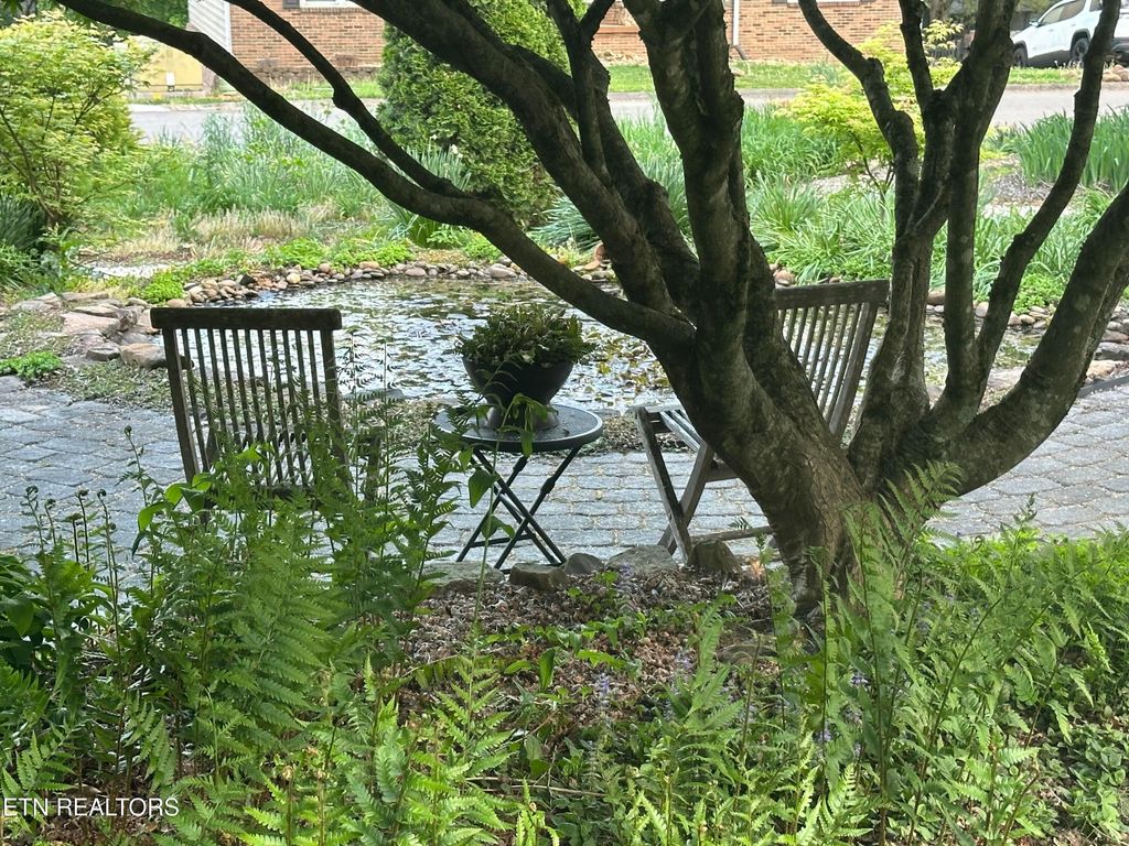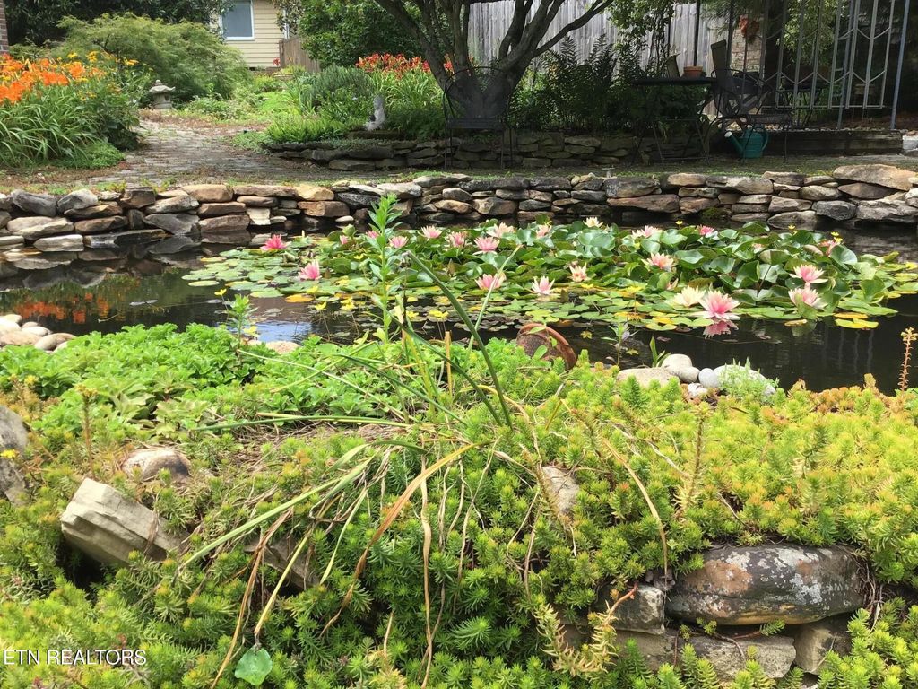 Outdoors, the thoughtfully landscaped quarter-acre lot is a true retreat, featuring evergreens, perennials, and native plantings. Enjoy multiple outdoor living spaces including a gravel firepit area, concrete paver terraces, open garden paths, a large vegetable garden, raised herb and cut flower beds, a tranquil water lily pond, and a convenient exterior tool shed.