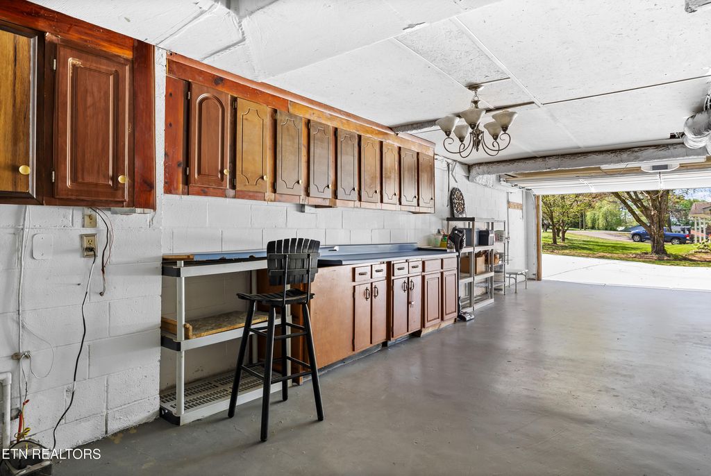 The Basement Garage-of-your-dreams is here, with a total of 582 sq. ft.--room for 2 vehicles In Addition To a roomy workshop outfitted with loads of cabinetry, counterspace, lighting--the ultimate mancave or crafter's dream!