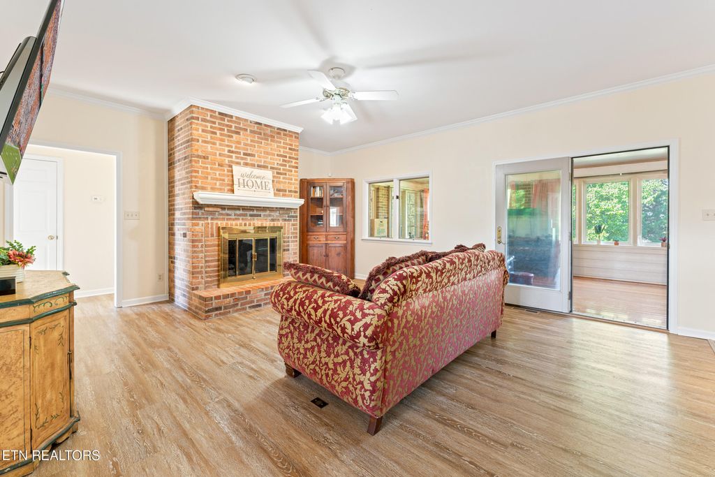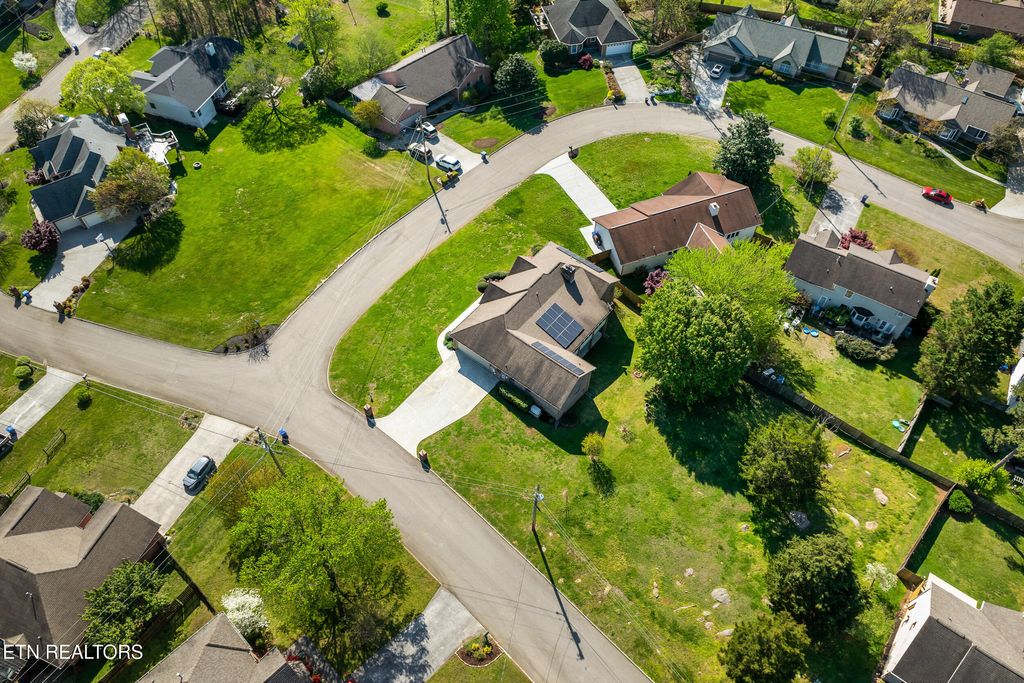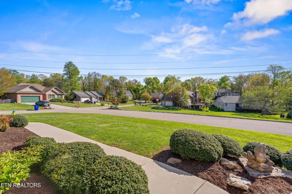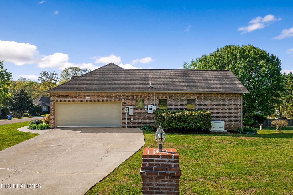 A remarkable portrait of exquisite landscaping and stately brickwork is displayed with postcard-worthy perfection in this sensational Knoxville home! Positioned along a serene cul-de-sac street, you will be greeted by large front yard and spacious backyard providing ample room for outdoor activities, gardening or simply relaxing in nature. Elegant half-moon stairs lead to the front door, which opens to reveal an interior that exudes luxury and comfort. This exceptional property pairs classic design with the space and flexibility your lifestyle demands, carving out space for the whole family like in the formal living room/office as well as in the bright, beautiful sunroom. A charming gourmet kitchen anchors the home, outfitted in rich custom cabinets and stainless steel appliances, right around the corner from the formal dining room. The family room fireplace is pure comfort and the ultimate place to kick back and relax, rendered in a brick surround that reached from floor to ceiling. Three bedrooms and two full bathrooms on this level are laid out in a highly desirable split-bedroom layout, promising peaceful R&R to all. Retreat and regroup in the generous accommodations of the primary bedroom that permits direct access to the sunroom and offers a luxe ensuite with soaker tub, separate shower and mirrored bi-fold doors into a large walk-in closet. This thoughtfully designed home is laid out across a single level, along with a full basement that offers the opportunity for expansion or storage, complete with a finished half bath to get you started and your creative energy piqued! This superior home is further enhanced with eco-friendly solar panels and a generator, with 2-car finished garage on the main level and a basement garage that makes a perfect workshop space or secure parking for lawn equipment. Impressive in every way, including its location, this home stands mere minutes from downtown Knoxville, Old City and the University of Tennessee, as well as near the UT Medical Center, with easy Maryville access. The neighborhood is equally inviting, featuring an active volunteer HOA that organizes community events and fosters a welcoming atmosphere, along with a dedicated neighborhood watch for added peace of mind. Buyer to verify all information.