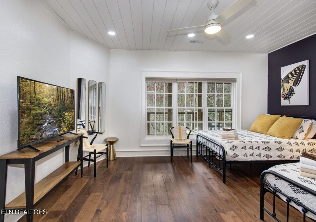 The setting is equally compelling. Just beyond the property, the Great Smoky Mountains National Park unfolds with miles of trails, scenic overlooks, and timeless natural beauty.