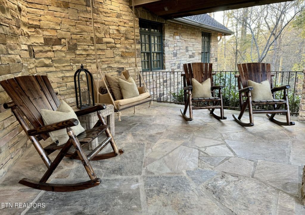 Spanning nearly 9,000 square feet across three levels, the residence includes all furnishings and appliances, 6 bedrooms, 6 full baths, 1 half bath, and 22 total rooms. An elevator provides seamless access to every floor, adding ease to its impressive scale. Throughout the home, soaring ceilings, expansive glass walls, and multiple stone fireplaces--both indoors and out--create a constant dialogue between luxury and landscape.