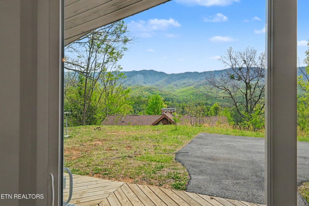 The View guests are looking for! 180-degree panoramic views of the Great Smoky Mountains from this rare, level lot spanning just over a half-acre. Massive picture windows bring the majesty of the mountains directly into your living space, creating a seamless connection with nature.