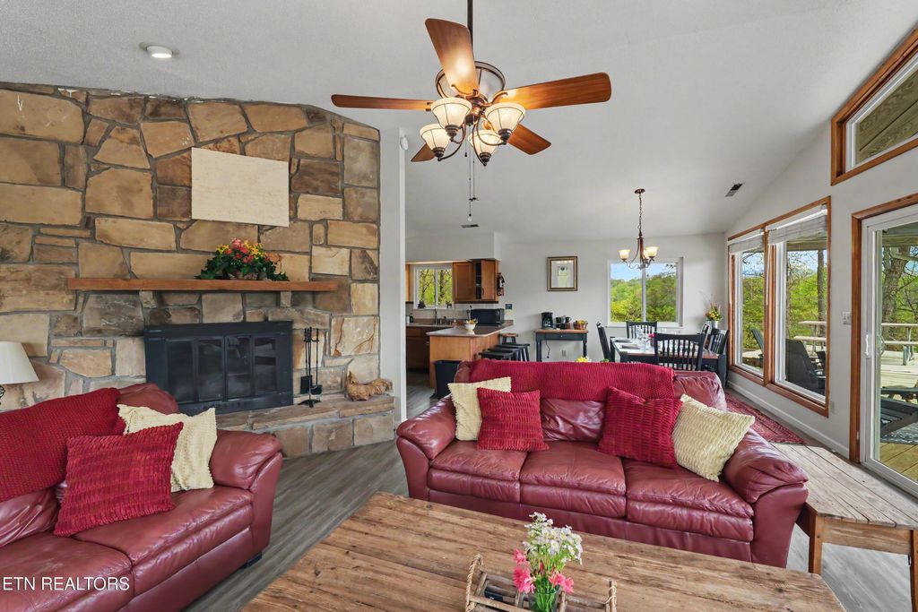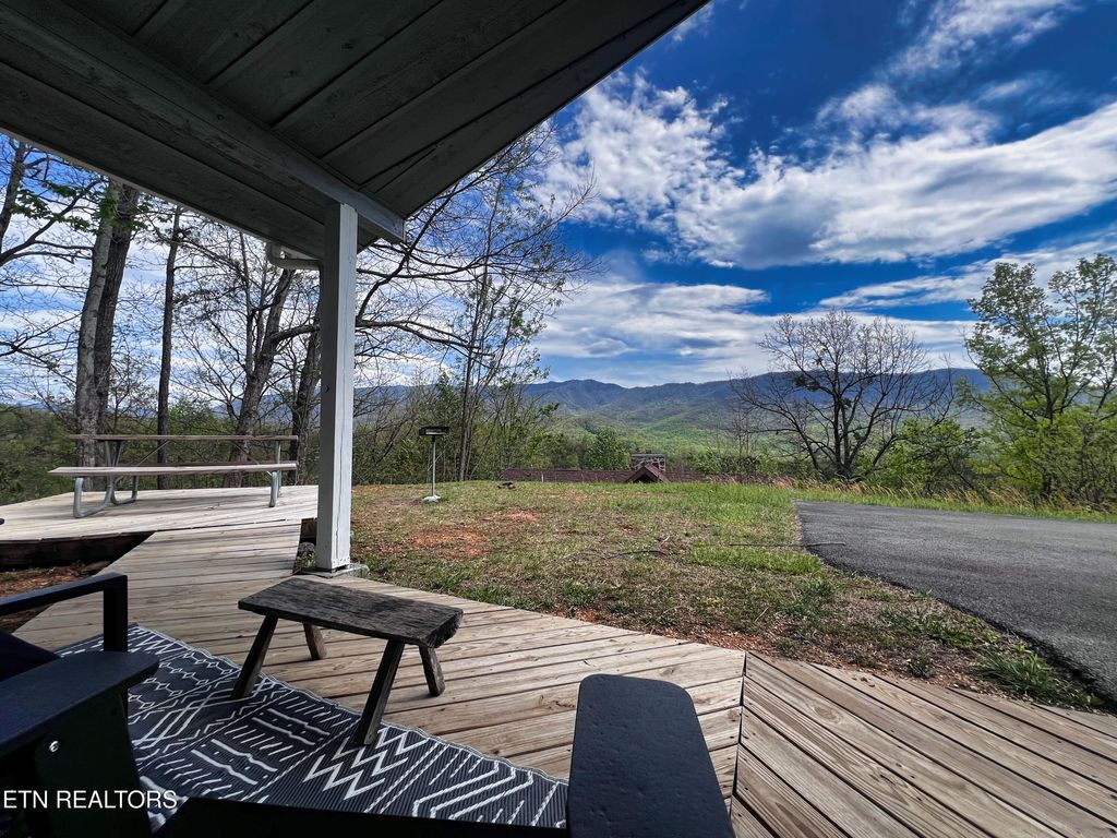 The versatile and spacious floor plan along with an additional bonus room allows this cabin to rent as 3 rooms. On the main floor are two spacious bedrooms and a full bath. Upper Level: A private bonus room with a full bath and a walk-out deck--offering yet another dimension to take in those world-class views. Golden outdoor & entertainment space! This cabin sits on a level lot, providing ample space for outdoor games, mini golf, or fire pit. Perfect for family reunions and group gatherings. Photos taken here are will feature the Smoky Mountains as a stunning backdrop for lasting memories. Solid turn-key Investment! New roof, main level flooring, and fresh paint all within the last year. The community amenities include swimming pools, tennis and pickle ball courts for you or your guests to enjoy. This cabin is not just an address, it is an experience! Buyer to verify all information, including sq ft.