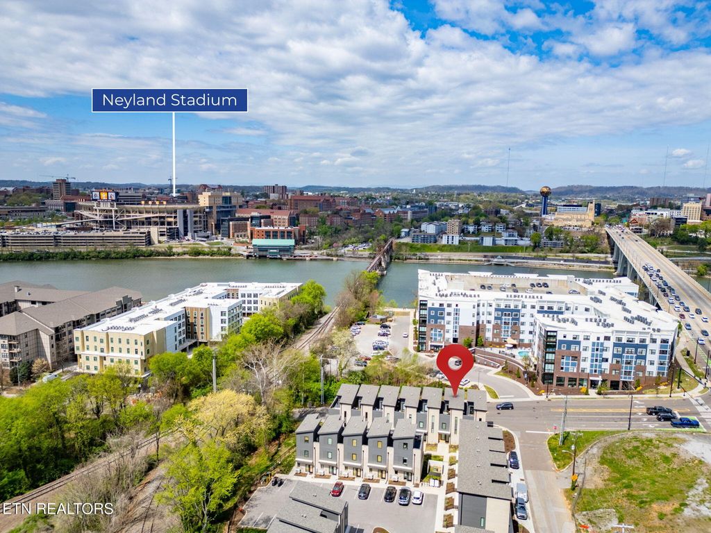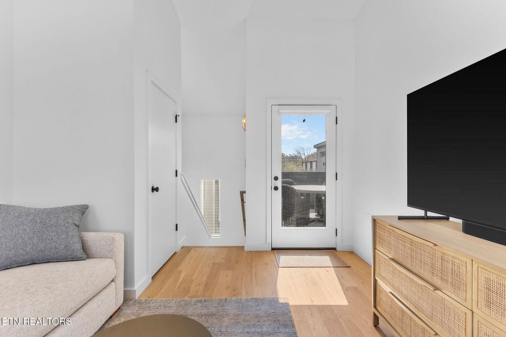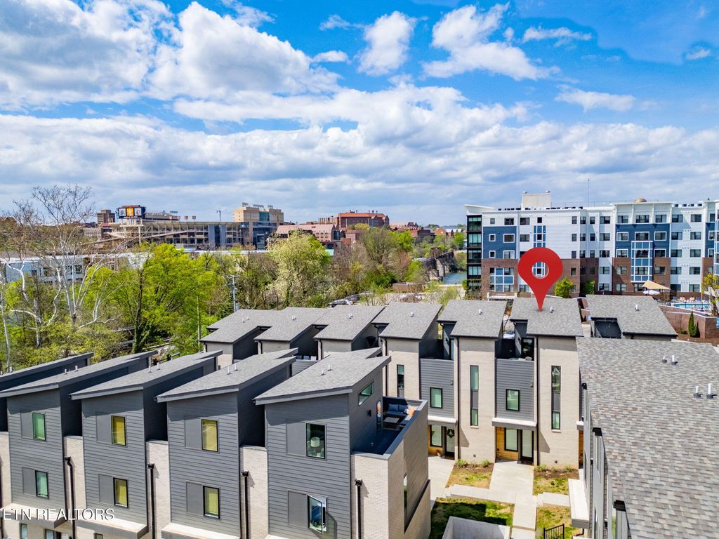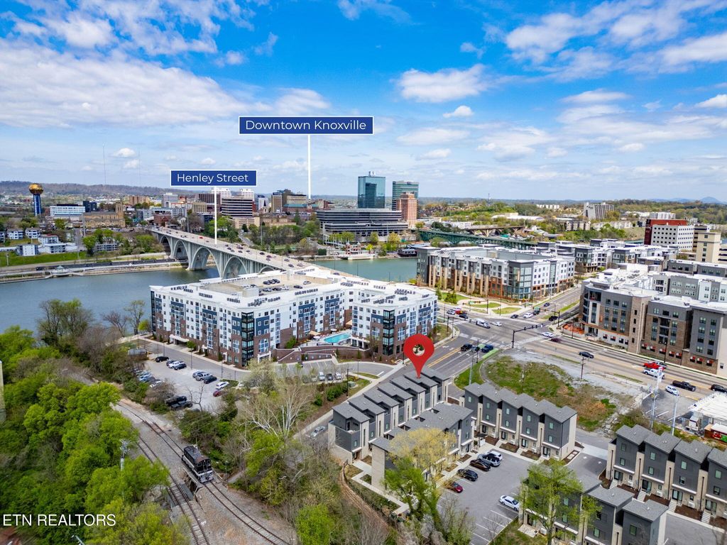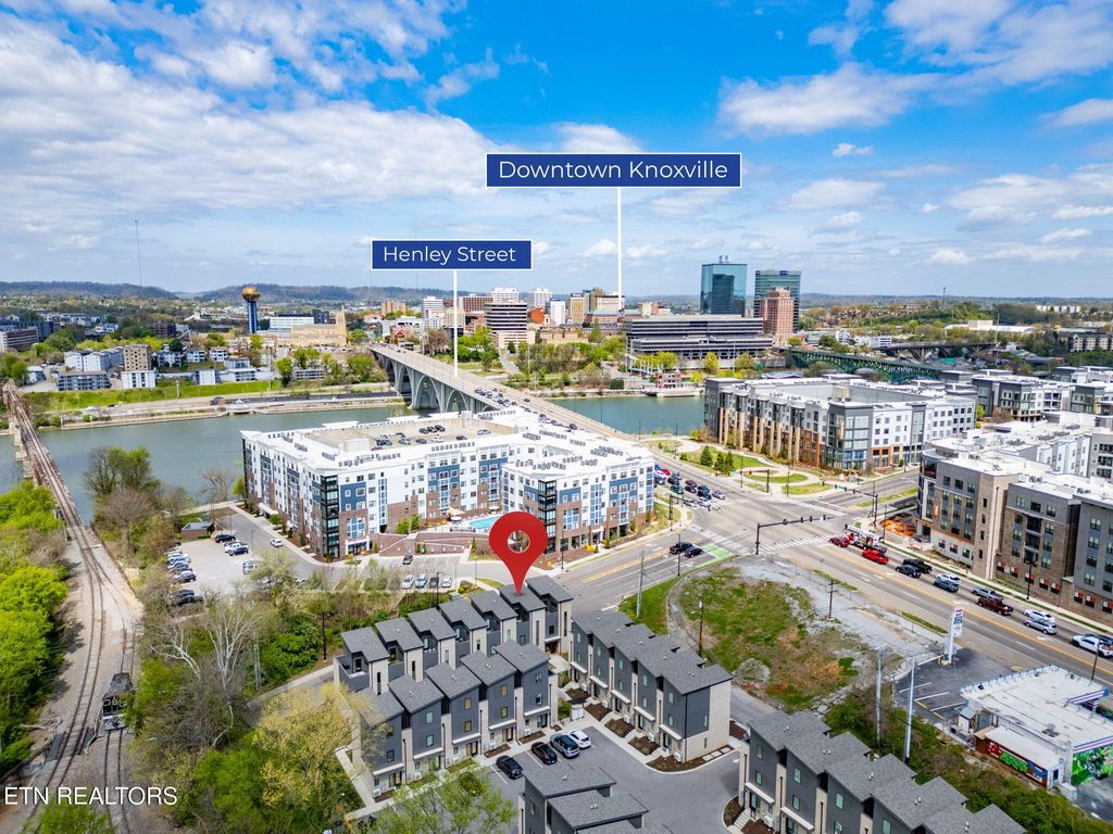 Sophisticated, modern, and impeccably located--this 2023-built South Waterfront District townhome offers an elevated take on urban Knoxville living. Spanning 1,318 square feet, this 1 (or 2) bedroom, 1.5-bath residence showcases refined, high-end finishes including hardwood flooring throughout, designer tile, and a sleek, quartz-appointed kitchen and bath, tall ceilings, and extra-large windows.