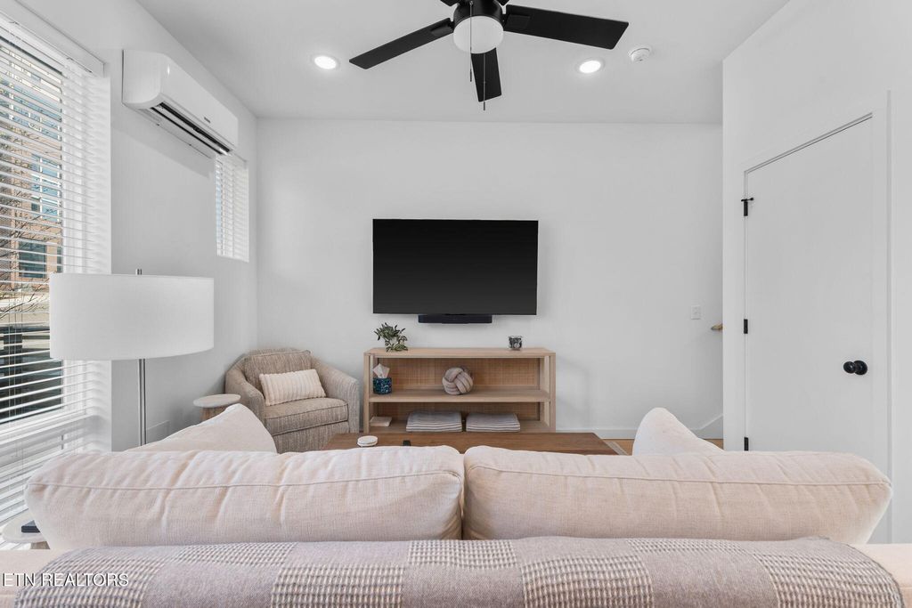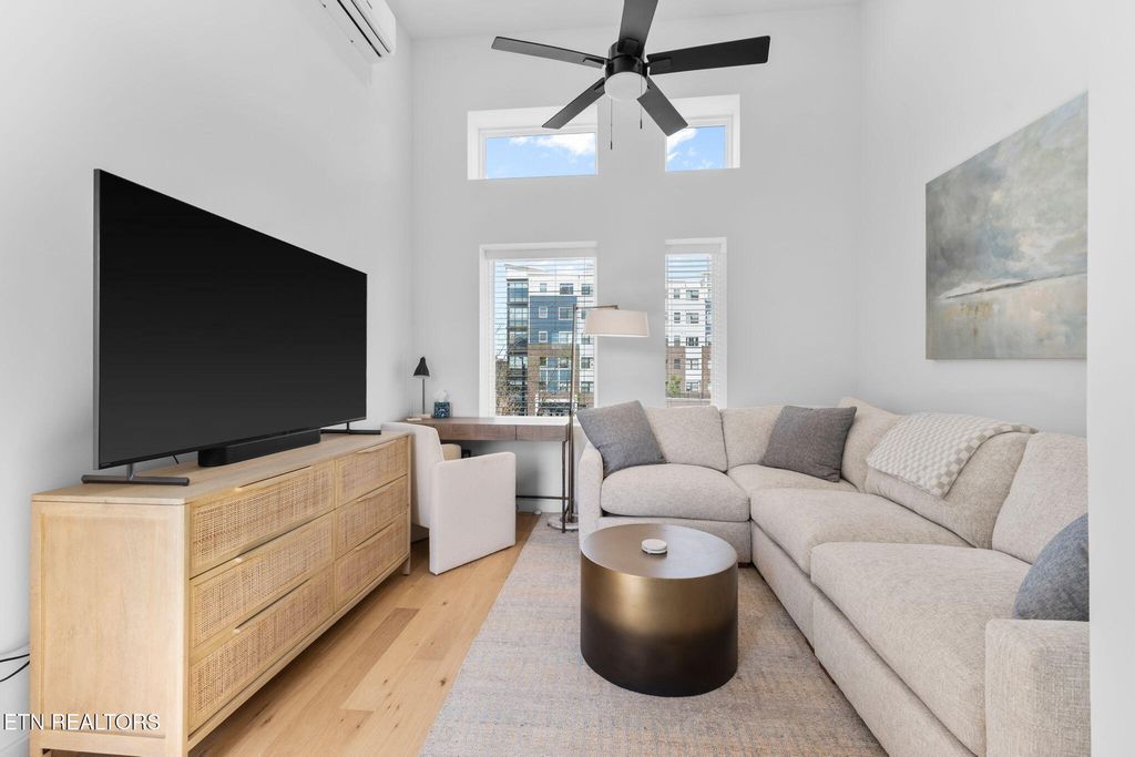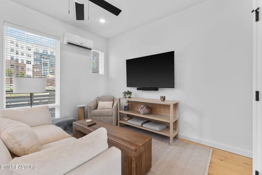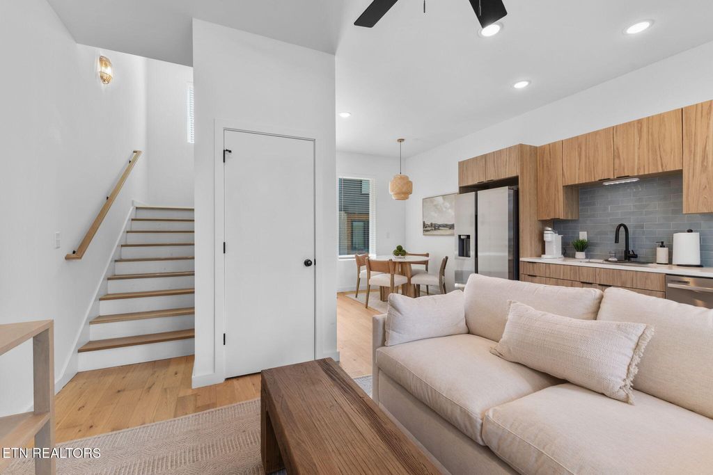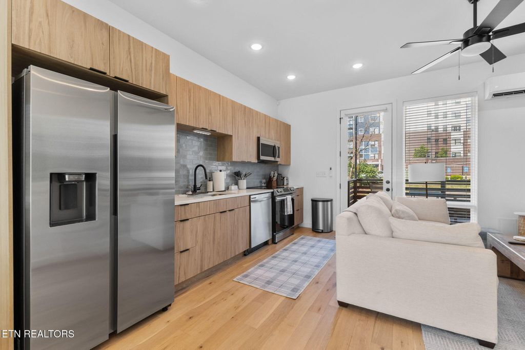 Sophisticated, modern, and impeccably located--this 2023-built South Waterfront District townhome offers an elevated take on urban Knoxville living. Spanning 1,318 square feet, this 1 (or 2) bedroom, 1.5-bath residence showcases refined, high-end finishes including hardwood flooring throughout, designer tile, and a sleek, quartz-appointed kitchen and bath, tall ceilings, and extra-large windows.