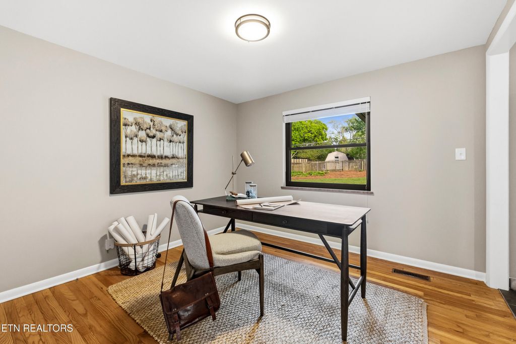 Thoughtfully cared for, the property reflects true pride of ownership, with extensive updates and diligent ongoing maintenance throughout. Inside, stunning hardwood floors flow seamlessly throughout the home. The renovated kitchen and two revamped bathrooms were designed with both style and functionality in mind. The third bedroom is currently utilized as an open-air home office but can be easily converted back to a traditional bedroom.