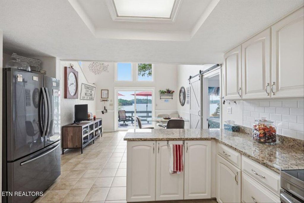 Natural sunlight is plentiful, and breathtaking lake and mountain views can be enjoyed from all rooms of the home. The kitchen is both spacious and anchored by Stainless Steel appliances, custom cabinetry and granite countertops. The inviting living room offers soaring vaulted ceilings, an abundance of natural light, a large stone fireplace, gleaming hardwood floors, and again, views, views, views! The main level sunroom is both serene and roomy and is currently used as a home office. The large master bedroom offers comfort and expanded closet space as well as a master bath with custom shower. A bonus room or possible 4th bedroom area with a full bath is located on the lower level.